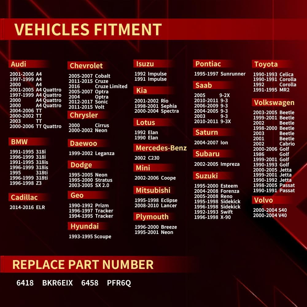 【الإعداد】متوافق مع 2001-2006 Audi A4 /1997-1999 Audi A4 /2000 Audi A4 /2001-2005 Audi A4 Quattro /1997-1999 Audi A4 Quattro /2000 Audi A4 Quattro /2000 Audi A4 Quattro /2004-2006 Audi TT /2000-2002 أودي TT /2003 أودي TT /2000-2006 أودي TT Quattro /1991-1995 بي إم دبليو 318i /1996-1999 بي إم دبليو 318i /1991-1995 بي إم دبليو 318is /1996-1999 بي إم دبليو 318is /1995 بي إم دبليو 318ti /1996-1999 بي إم دبليو 318ti /1996-1998 BMW Z3 /2014-2016 كاديلاك ELR/2005-2007 شيفروليه كوبالت /2011-2015 شيفروليه كروز /2016 شيفروليه كروز ليمتد /2005-2007 شيفروليه أوبترا /2004 شيفروليه أوبترا /2012-2017 شيفروليه سونيك /2011-2015 شيفروليه فولت /2000 كرايسلر سيروس /2000-2002 كرايسلر نيون /1999-2002 دايو ليجانزا