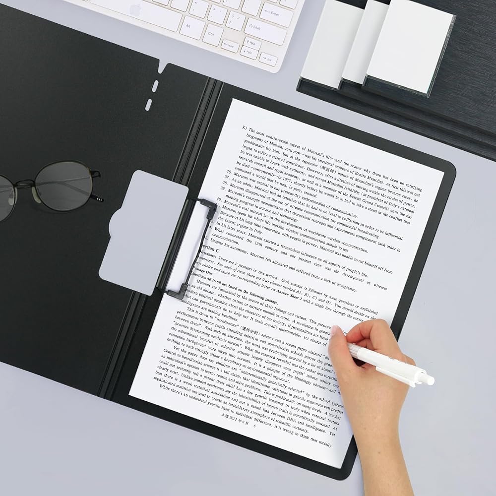 • ألواح حافظة قابلة للطي: زوايا دائرية مقاس A4 قابلة للطي فوق ألواح الحافظة توفر تجربة أكثر أمانًا، غطاء قابل للطي بتصميم مخطط ناعم مريح وغير قابل للانزلاق يحمي عملك ويساعد على الحفاظ عليه آمنًا، يوفر الغطاء الداخلي الناعم سطحًا مثاليًا للكتابة