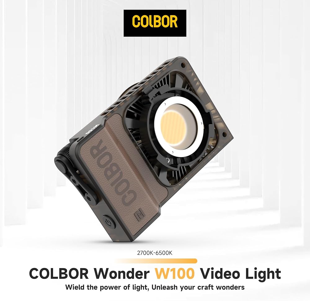 مصباح فيديو LED Colbor Wonder W100، طاقة 100 وات، وزن 345 جم فقط، إضاءة 3450Lux@1m، CCT 2700K إلى 6500K، يدعم التحكم في التطبيق للفيديو، والتصوير الفوتوغرافي، ومستخدمي YouTube، والبث المباشر