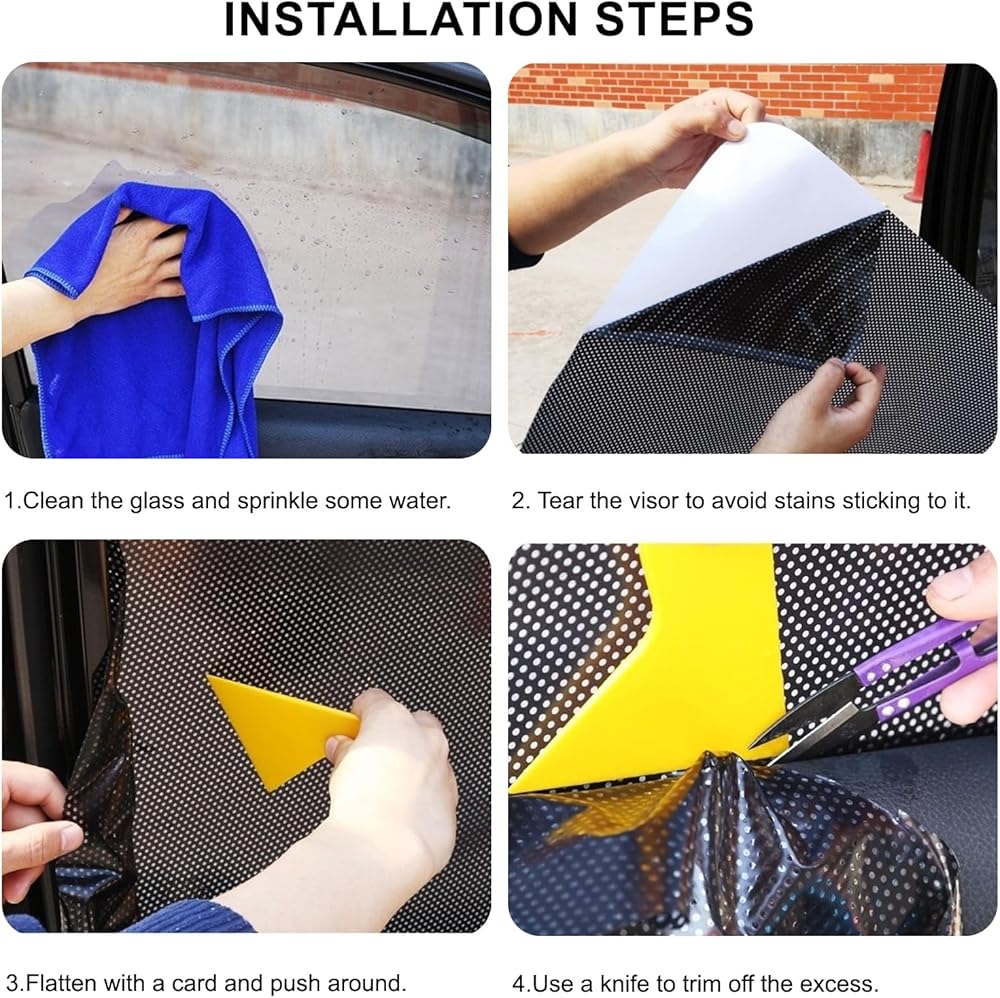 【No trace installation】: Break the traditional windshield visor cover complex use process, our car window tint according to the principle of electrostatic, no tools can be tightly adsorbed on your car window, can be reused and non-trace, does not affect the window rolling as well as driving, installation can be completed in a few minutes.