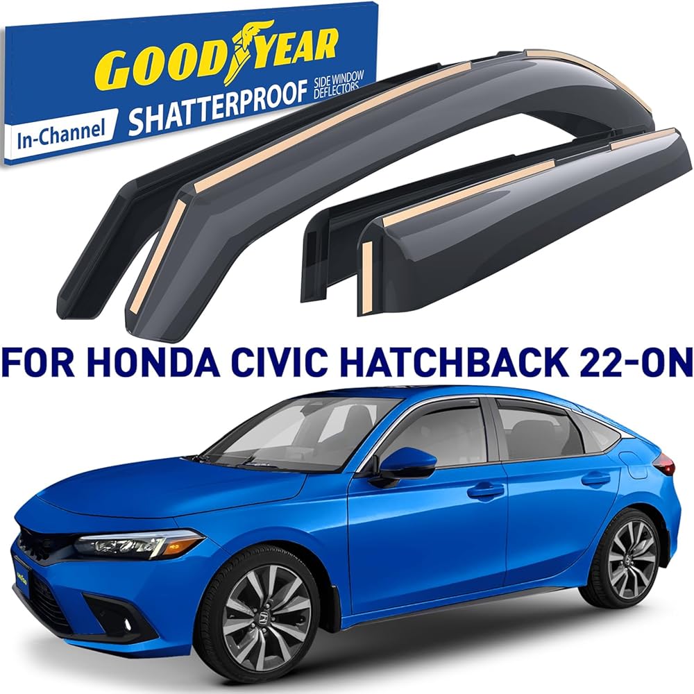 تسمح لك عاكسات النوافذ الجانبية الممتازة من Goodyear بتدوير نافذتك في المطر والرياح العاتية والثلج والجليد. تمنعك واقيات المطر الواقية من المطر للسيارات من التبلل أثناء الاستمتاع بالهواء النقي. مصنوعة من مادة متينة وعالية الجودة مقاومة للكسر. لن يتشقق واقي المطر أو ينكسر أو يتشقق.