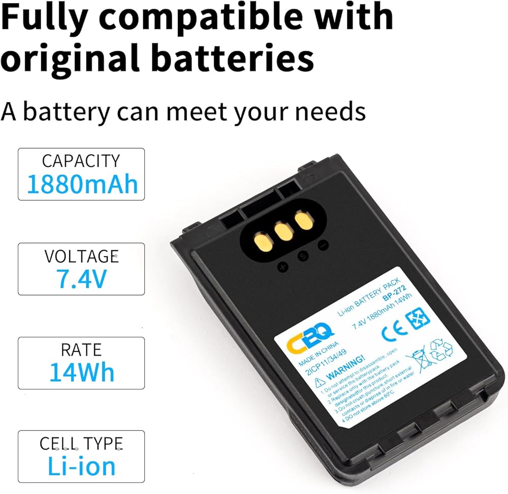 【حول العبوات: قطعة واحدة × بطارية BP-272 متضمنة في العبوة. 7.4 فولت 1880 مللي أمبير/14 وات في الساعة الحجم: 88*59*15 مللي متر صافي: 105 جم الإجمالي: 114 جم