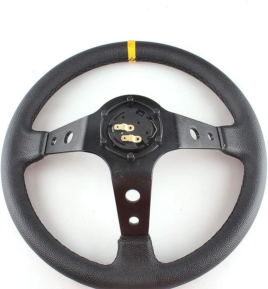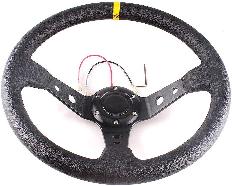 Material: The steering wheel is made of PVC leather, which provides you with a comfortable grip and special texture to improve operability and resistance