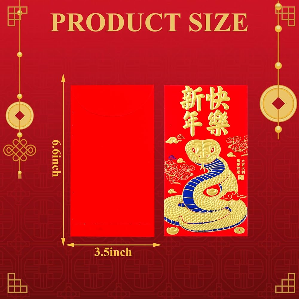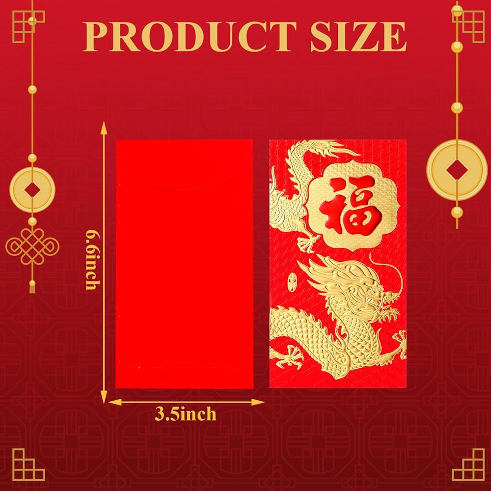 • Proper size: the size of each Dragon Year red envelopes is about 6.6 x 3.5 inches; The appropriate size to hold most of the banknotes and has enough capacity for holding your presents