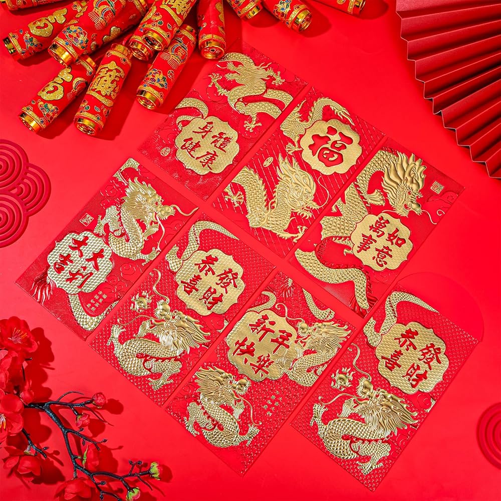 • Auspicious design: these 2024 Chinese red pockets are printed with different patterns of Chinese dragon and Chinese blessings, the combination of gold characters and red background is full of the atmosphere of spring festival; They are lovely in appearance and suitable for most ages, bringing surprise to your children and elders