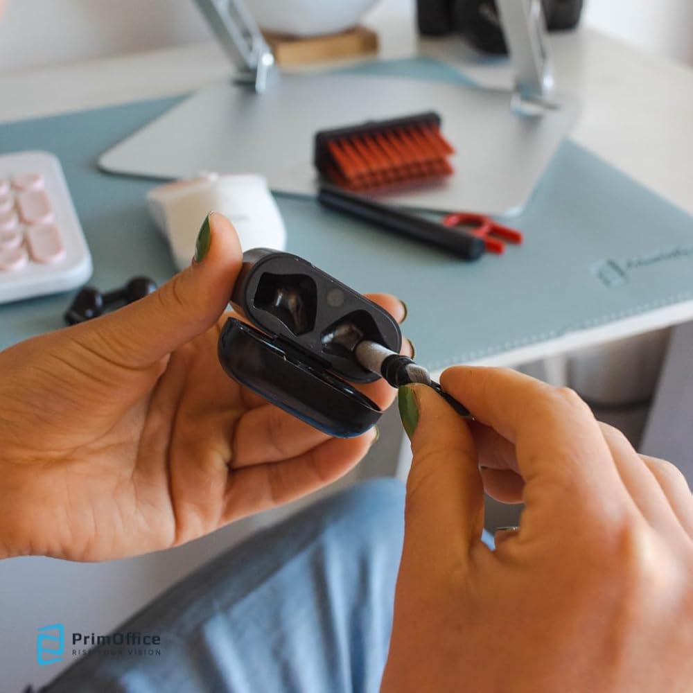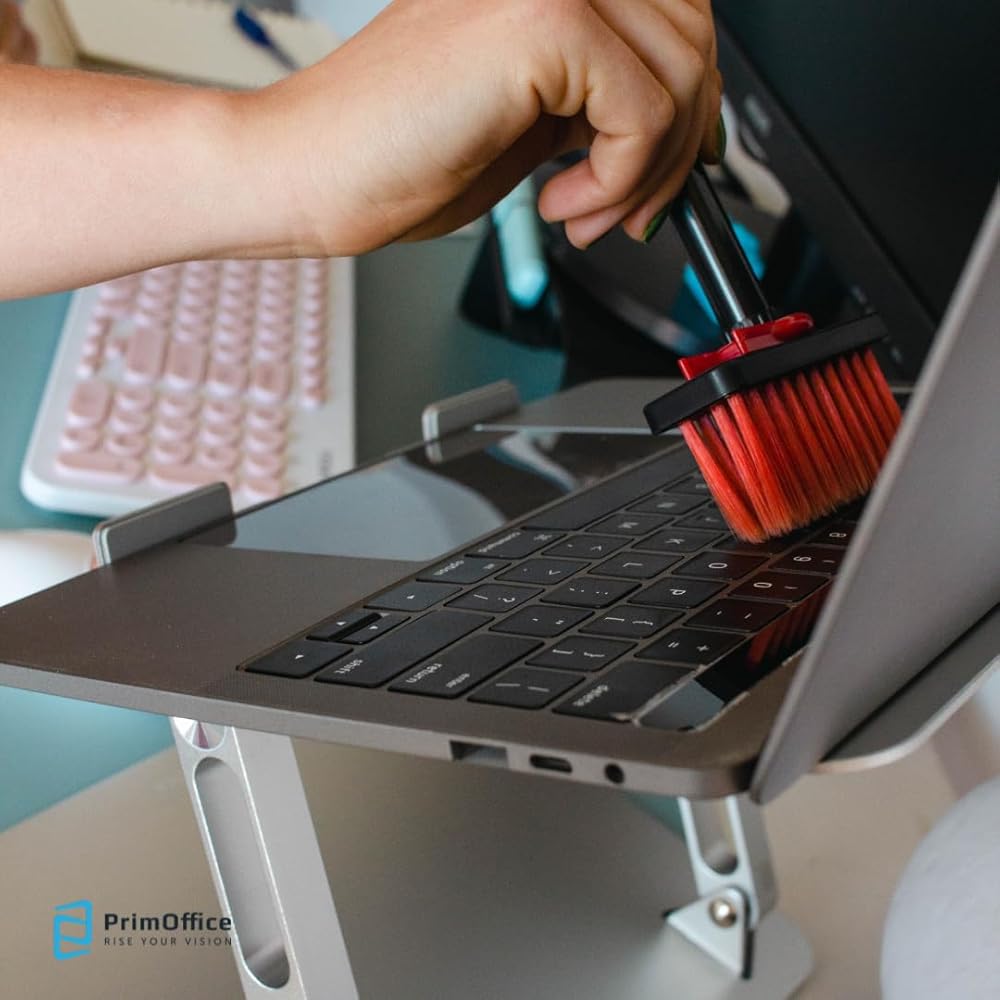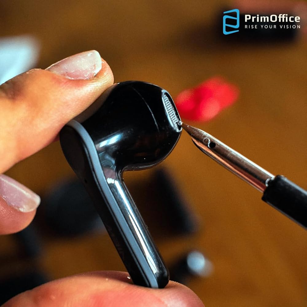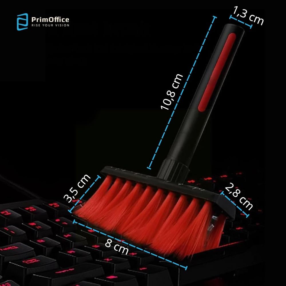 PrimOffice - فرشاة تنظيف ناعمة 5 في 1 متعددة الوظائف مع مجموعة أدوات تنظيف الكمبيوتر (مزيل المفاتيح، إسفنجة متدفقة، طرف قلم معدني، فرشاة عالية الكثافة، شعيرات من النايلون). لتنظيف لوحات المفاتيح، وسماعات الأذن، وأجهزة الكمبيوتر المحمولة