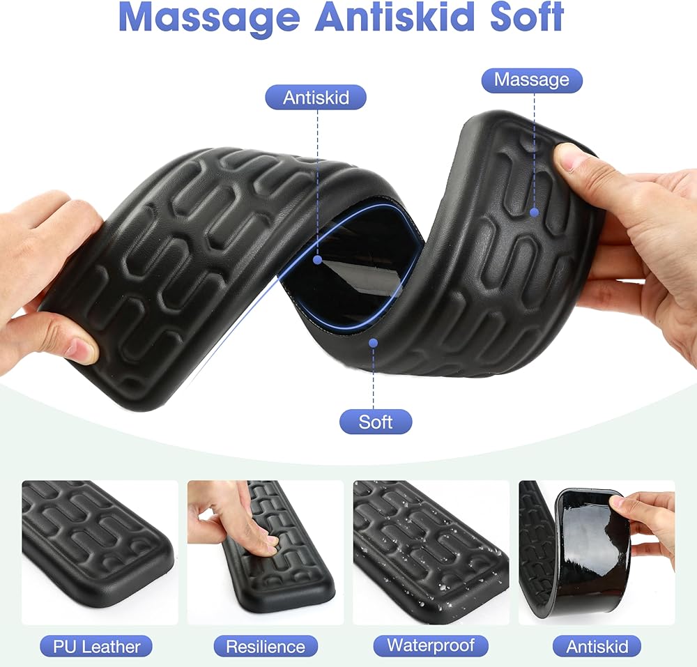 تصميم مانع للانزلاق. يتميز رفع لوحة المفاتيح بشفة منخفضة في النهاية لضمان بقاء لوحة المفاتيح في مكانها. تم تصميم مساند المعصم وقاعدة الأكواب بقاعدة مطاطية غير قابلة للانزلاق، مما يسمح لها بتوفير قبضة قوية على سطح المكتب.