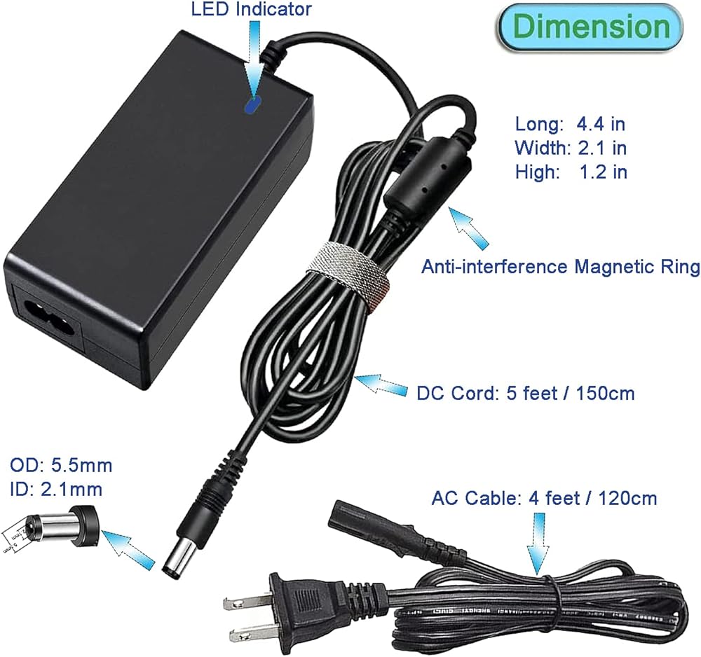 سلك إمداد طاقة محول تيار متردد/تيار مستمر بقوة 24 فولت مدرج من UL لمكبرات الصوت VSB200 VSB205 VSB210 VSB211 VSB206 VSB207 VSB210WS VHT215 VHT510 وVorTech QuietDrive MP10 MP40 MP40QD