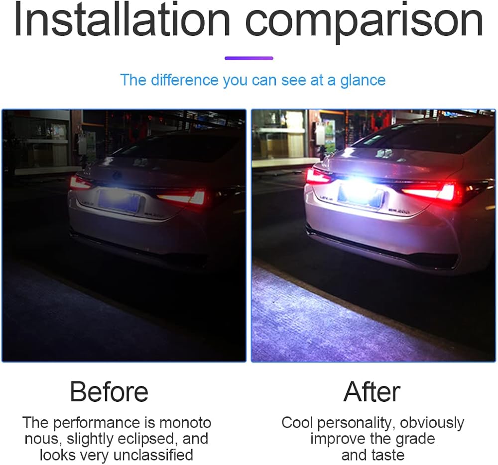التطبيق - متوافق مع معظم السيارات والدراجات النارية والشاحنات وATV وسيارات الدفع الرباعي والدراجات وRV وغيرها كإضاءة خلفية ولوحة الترخيص. هناك 7 ألوان إضاءة مختلفة لتختار منها، اختر اللون الذي يناسب سيارتك بشكل أفضل أو الذي تفضله لتزيين سيارتك/دراجتك النارية.