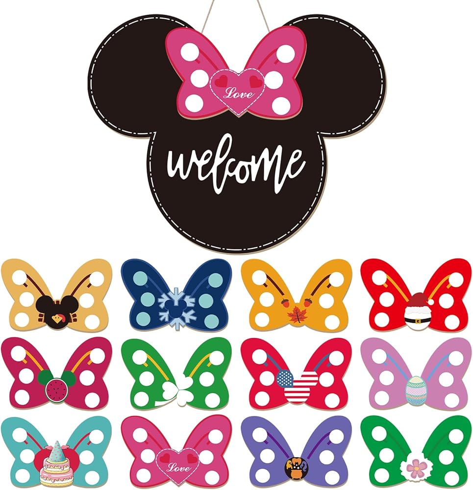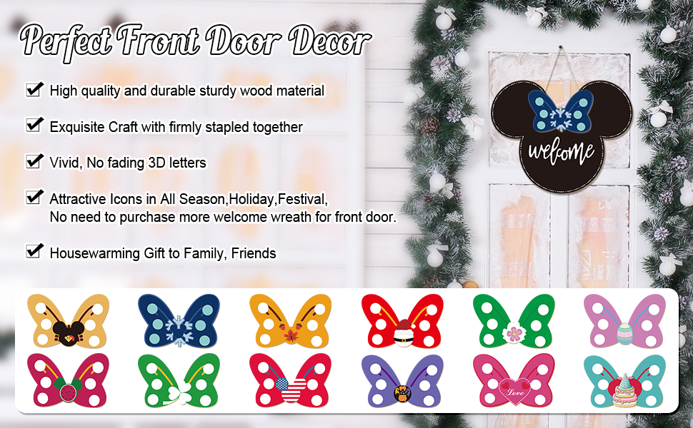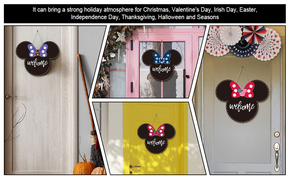 • ديكور مبتكر للباب: سوف تحصل على مجموعة لافتات باب موسمية ذات تأثير ثلاثي الأبعاد، بما في ذلك لافتة باب خشبية على شكل فأر مطبوعة مع ترحيب و10 لافتات موسمية قابلة للتبديل، والتي يمكنك لصقها المفضلة لديك على رأس الفأر!