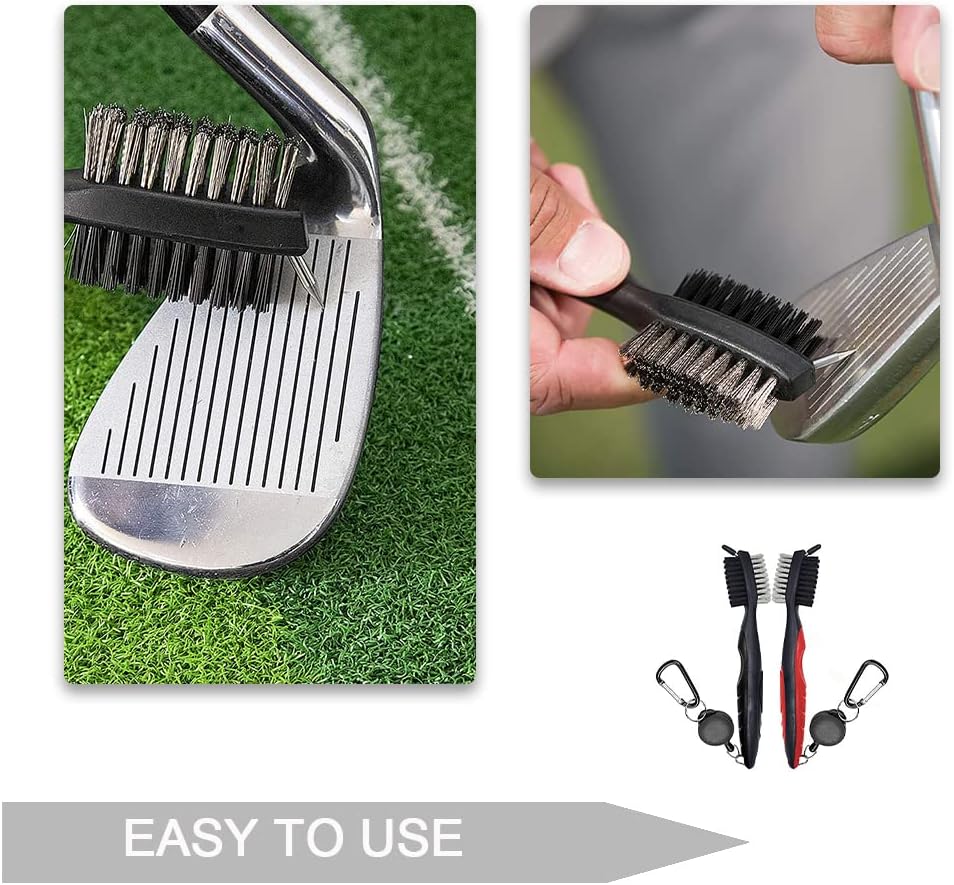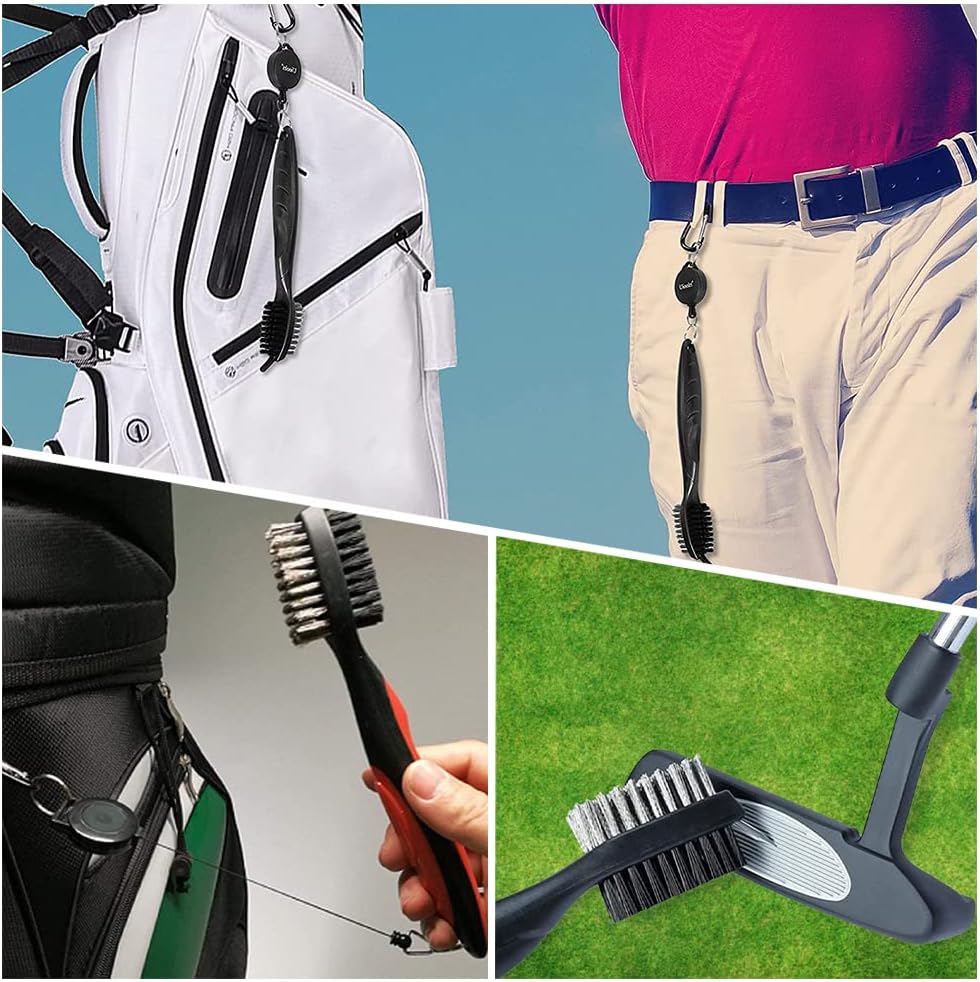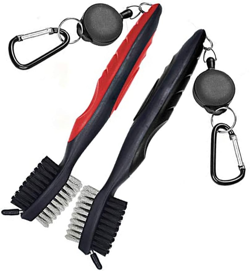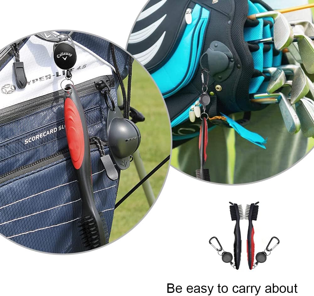 2 Pack Golf Club Brushes Golf Club Cleaners Golf Dual-Bristle Brushes with Retractable Zip-line and Carabiner for Cleaning Golf Shoes Golf Ball Groove Golf Club