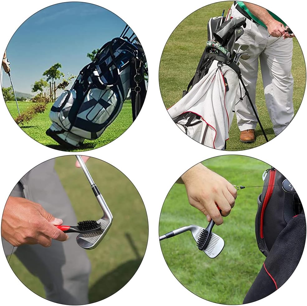 【Convenient Access】The retractable zip-line carabiner makes it easy to attach to your golf bag for blazing fast access, best cleaning tool for golf clubs and spikes, also has a spike on the top for cleaning deep in grooves and golf shoes.