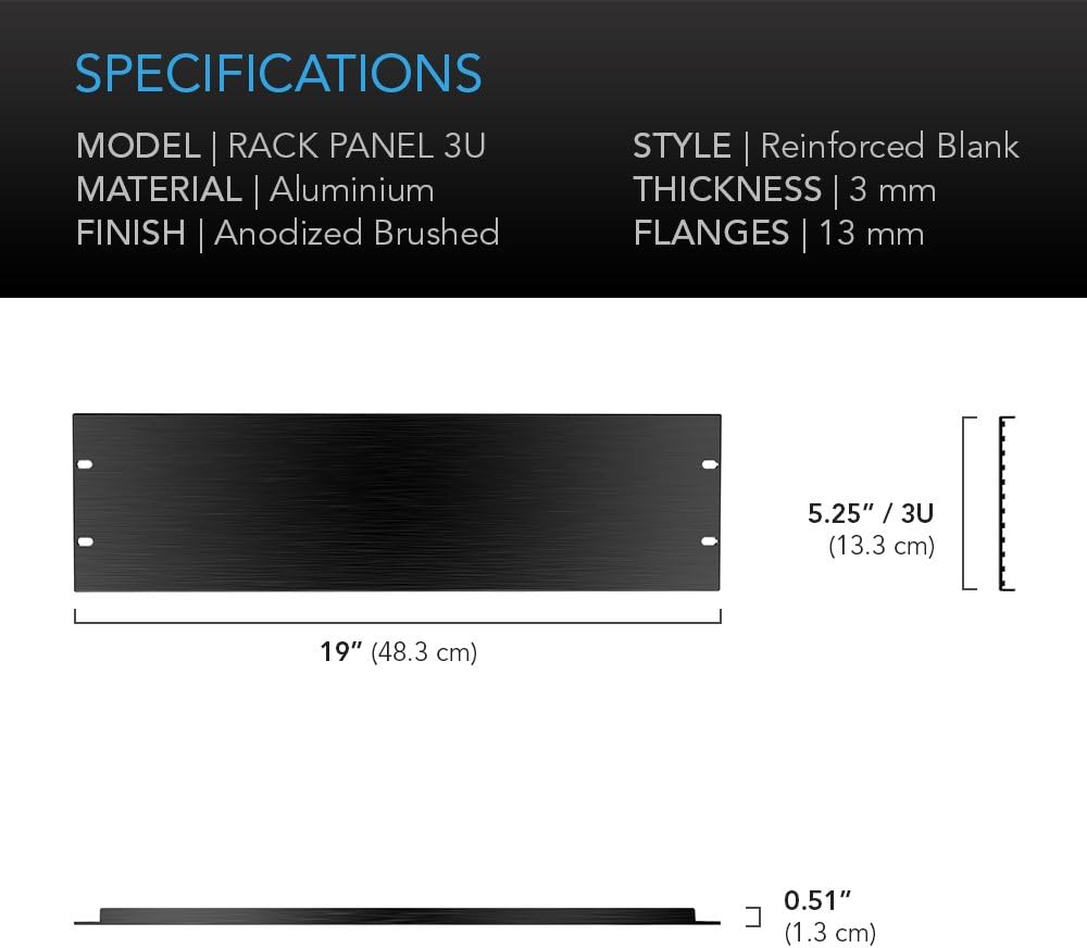 ملحق لوحة حامل AC Infinity مساحة 3U فارغة لتركيب حامل مقاس 19 بوصة، هيكل من الألومنيوم الفاخر ولمسة نهائية مؤكسدة
