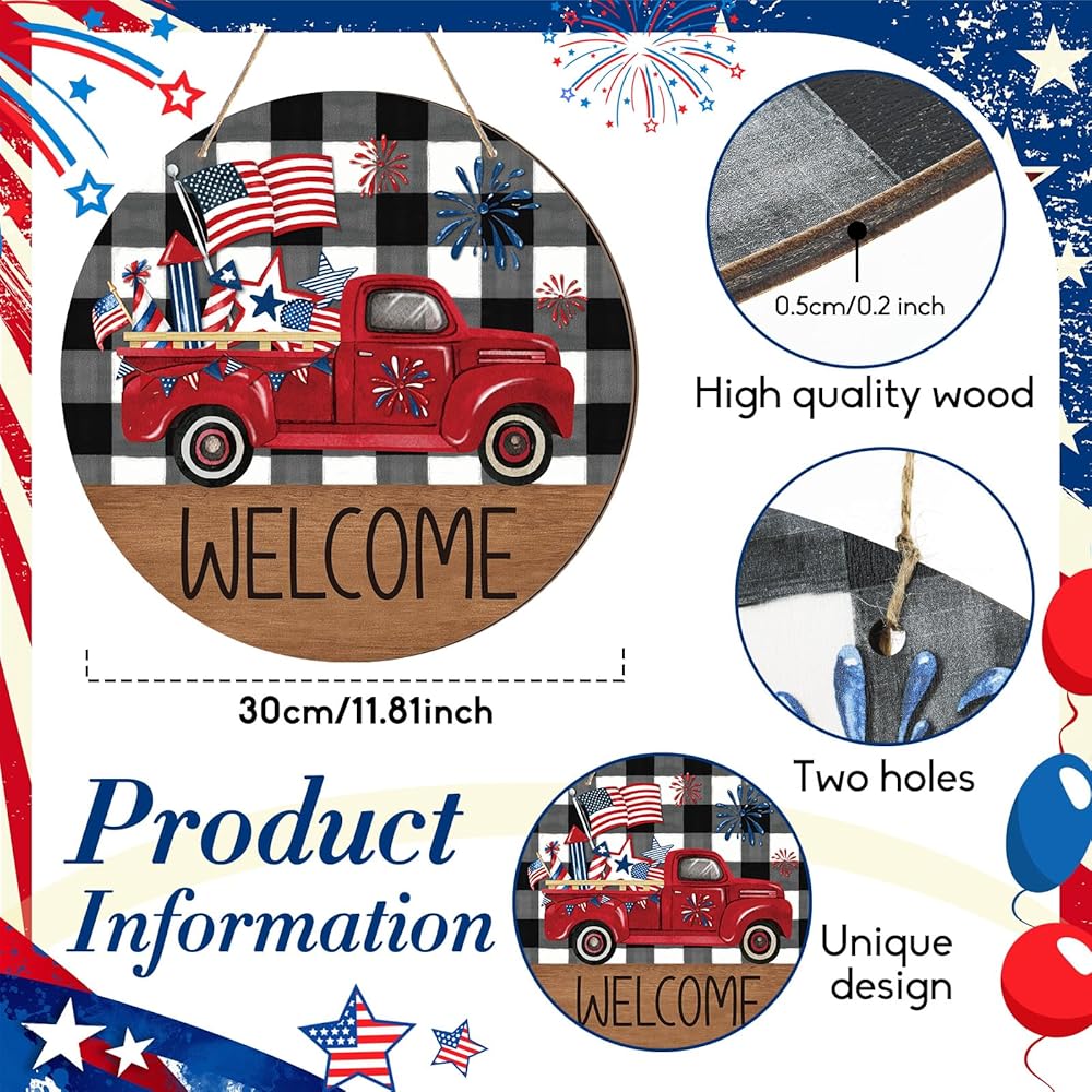 Dependably Sized for Visibility: sized at approximately 11.81 x 11.81 x 0.2 inches, this patriotic hanging door sign is designed for nice visibility without taking up too much space; It's a suitable size to put up on your walls, doors, or windows, ensuring that your patriotic atmosphere is clearly displayed for people to see