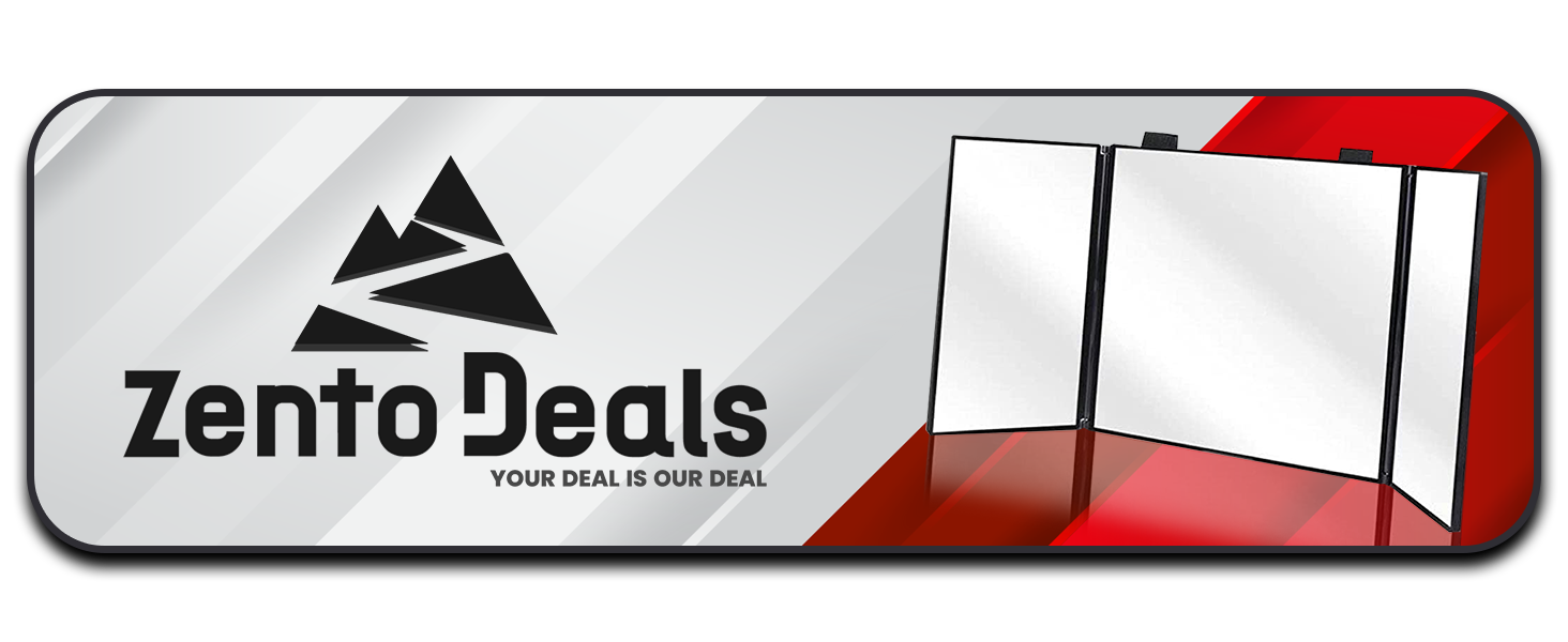 ✺ جودة فائقة - مرآة الزينة ثلاثية الطي من Zento Deals مصنوعة بجودة عالية لتوفر لك انعكاسًا واضحًا وحقيقيًا للحياة. المرآة مصنوعة من مواد عالية الجودة تضمن المتانة والمتانة، وهي مصممة لتدوم طويلاً!