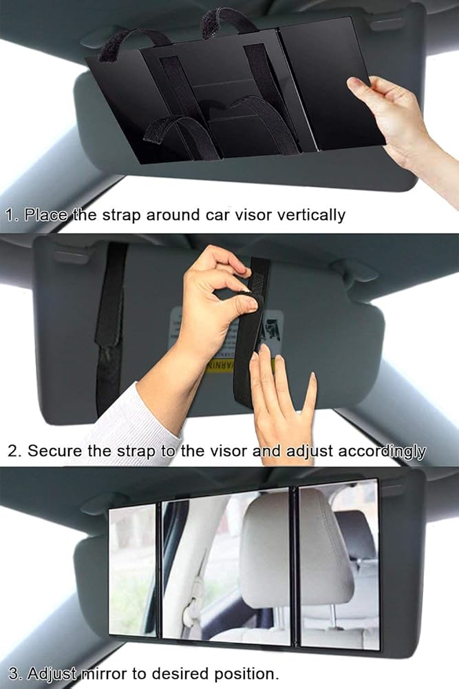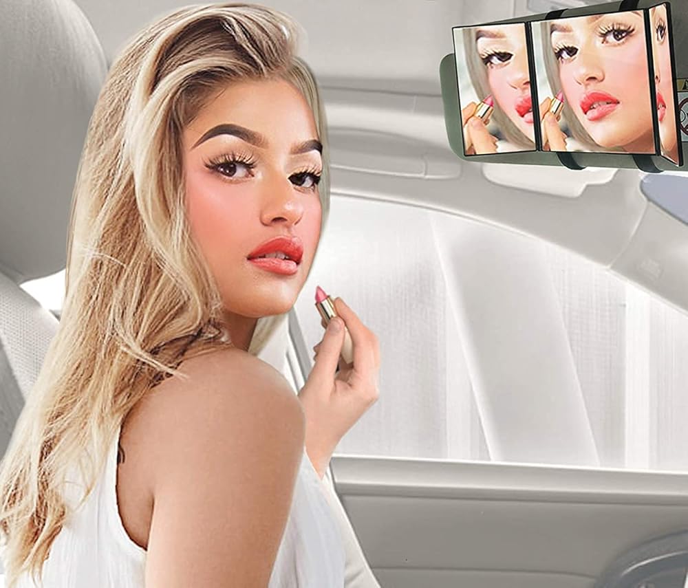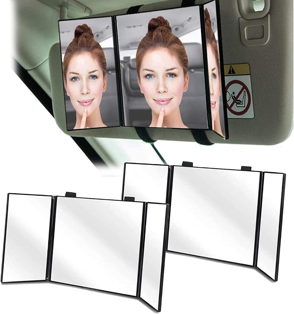 ✺ زاوية قابلة للتعديل - مرآة الزينة ثلاثية الطي من Zento Deals تظهر بوضوح كل التفاصيل مقارنة بالمرآة الواقية من الشمس الأصلية. كما تساعد الرؤية الواسعة التي تقدمها السائقين على فحص السيارات التي خلفهم.