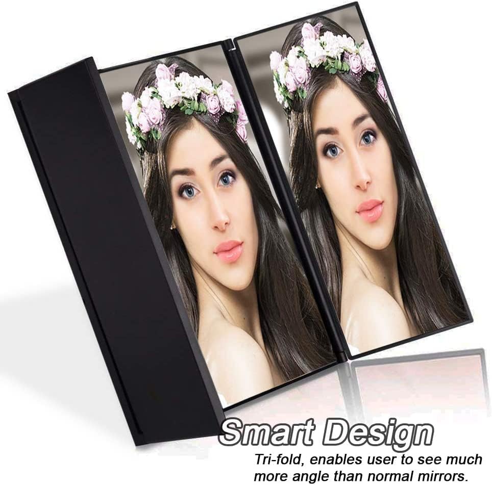 ✺ ميزة ثلاثية الطي - يوفر تصميم مرآة الغرور ثلاثية الطي من Zento Deals ثلاث زوايا بصرية مختلفة. يمكنك رؤية أصغر تفاصيل الجمال، وهي رائعة لتزيين الحواجب ووضع المكياج والملقط.