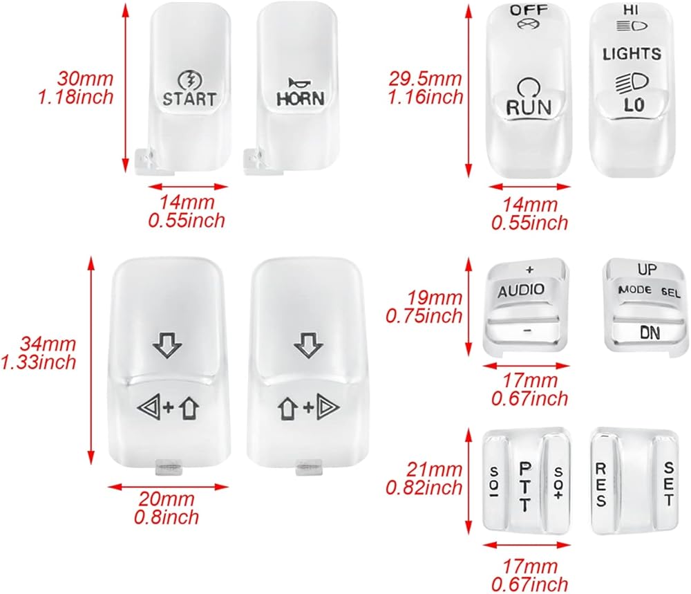 ➤الوظيفة: مجموعة بديلة جيدة لهاتفك الأصلي التالف أو غير العامل، استبدل الأغطية السوداء الموجودة دون إعادة الأسلاك. تحتوي المجموعة على مجموعة كاملة من أغطية مفاتيح الكروم لمفاتيح المقود اليسرى واليمنى. تم تصميمها بنفس الشعور المريح الذي توفره مفاتيح التحكم اليدوية للمعدات الأصلية.