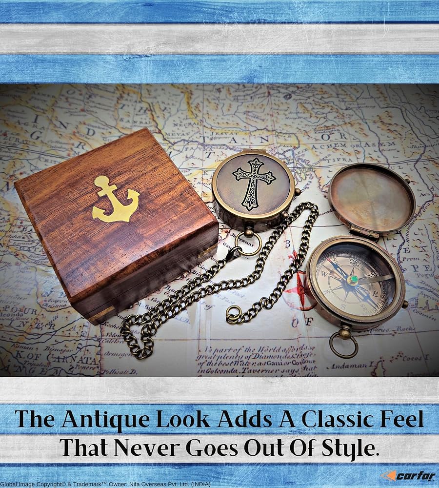 - 🧭 البوصلة البحرية العتيقة مصنوعة من النحاس عالي الجودة وتأتي مع علبة هدايا خشبية مصنوعة يدويًا.