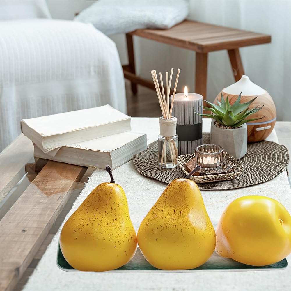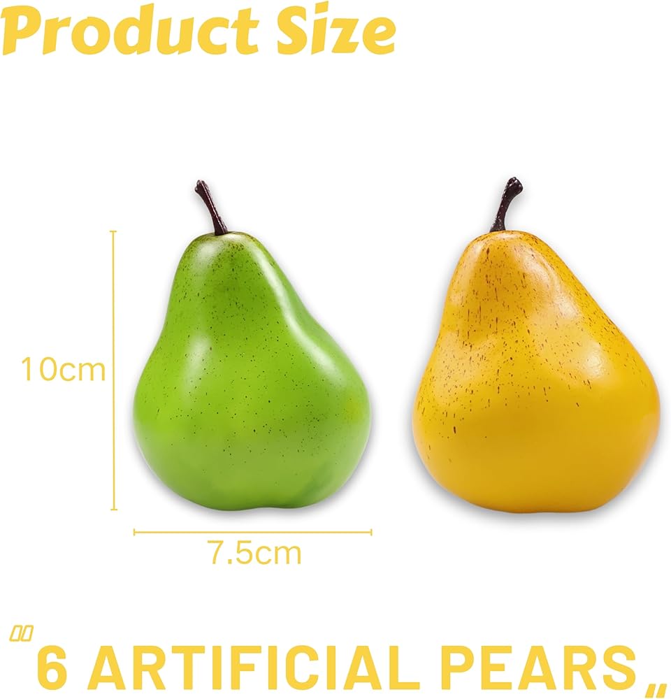 The premium selection of artificial pears is the perfect solution for adding color and freshness to your home decor without the hassle of buying and maintaining real pear. The fake fruits is carefully manufactured to look like real fruit, with realistic colors, textures, and shapes.