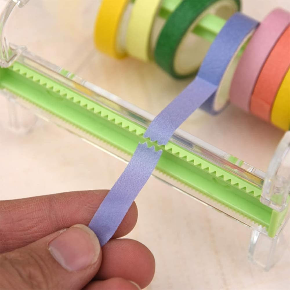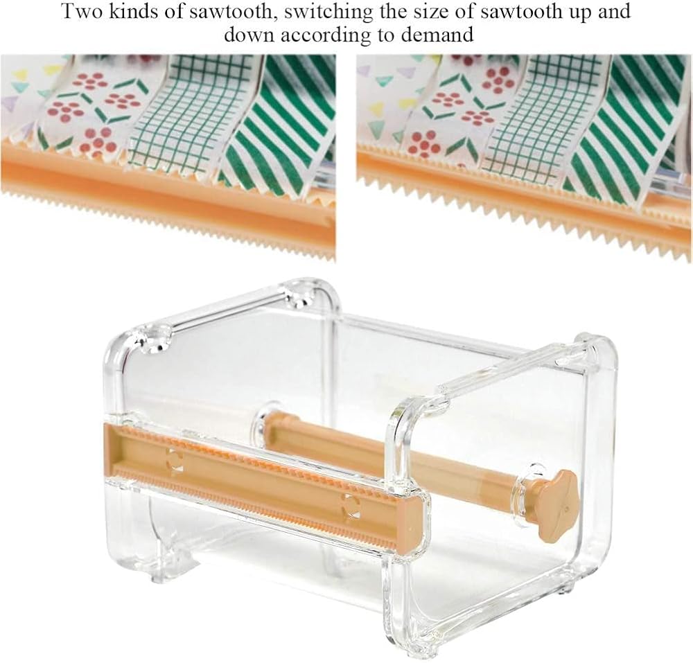 مصنوع من الأكريليك عالي الجودة وتصميم سن المنشار، موزع الأشرطة الخاص بنا متين للاستخدام، ويعمل بشكل رائع في قطع شريط الواشي والشريط الحرفي والشريط اللاصق في مكتبك أو في المنزل. سن المنشار البلاستيكي حاد بما يكفي لقطع الشريط، ولكن ليس من السهل قطع الأصابع، فمن الأفضل إبقاء أطفالك بعيدًا عنه.