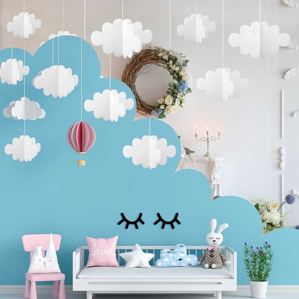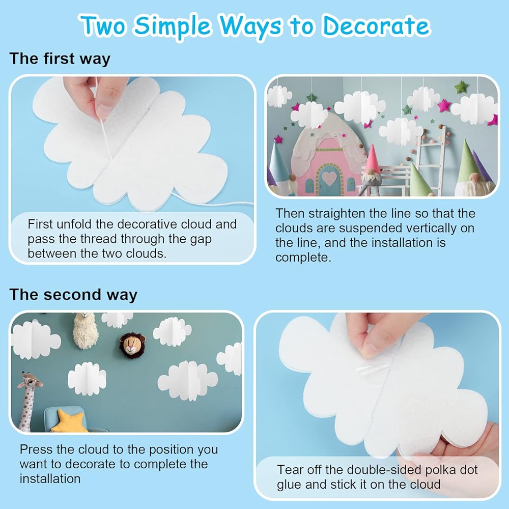 ☁【Widely Used】Cloud hanging decoration is the perfect hanging background choice, which is suitable for weddings, parties, baby showers, restaurants, bedrooms, school ceilings, walls, and doors, making the atmosphere more lively and interesting.