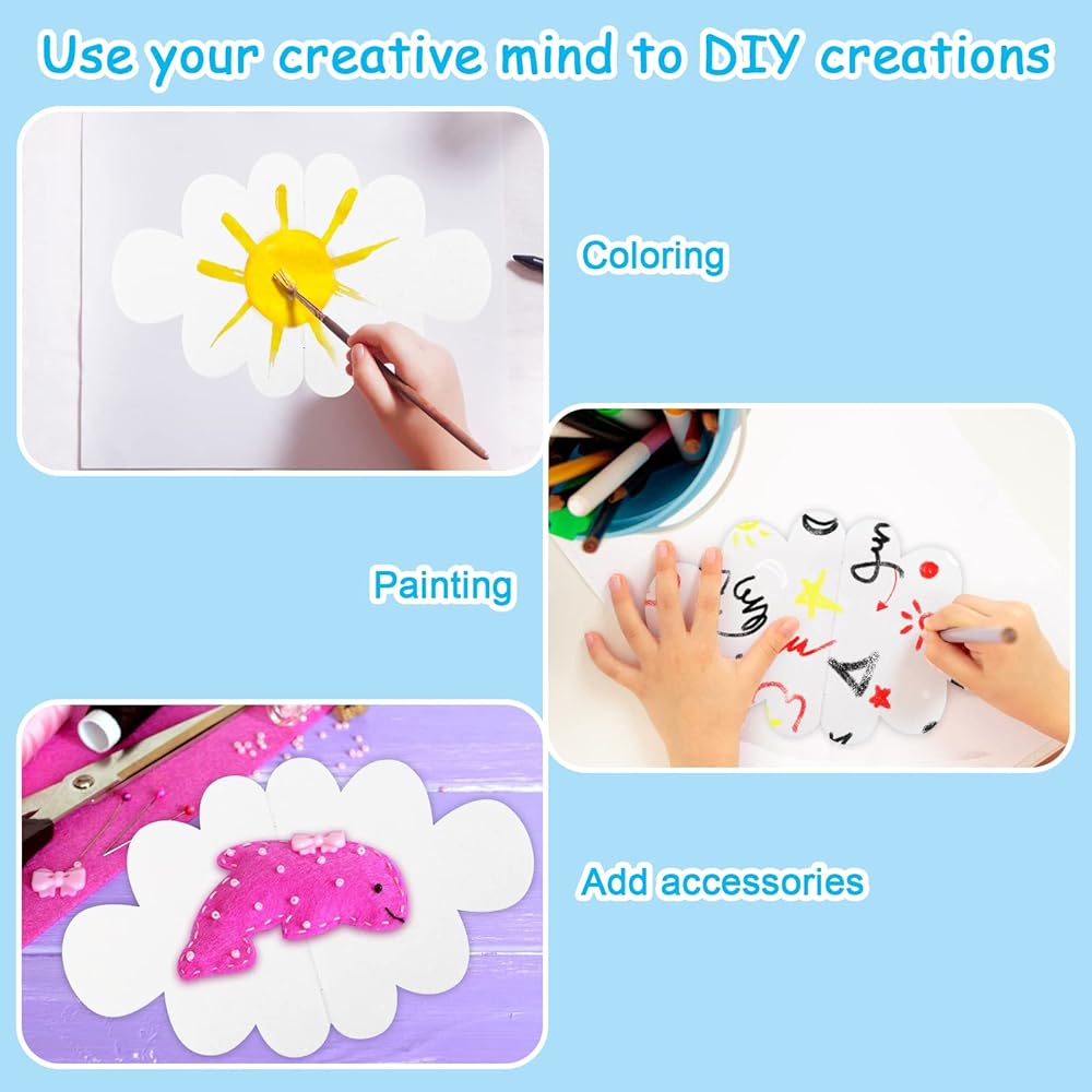 ☁【DIY Creation】These cute 3d cloud decorations are designed with clouds, and the whole is pure white. You can use your rich imagination to draw on them or sew other things on them to create unique cloud decorations.