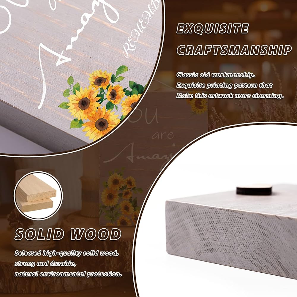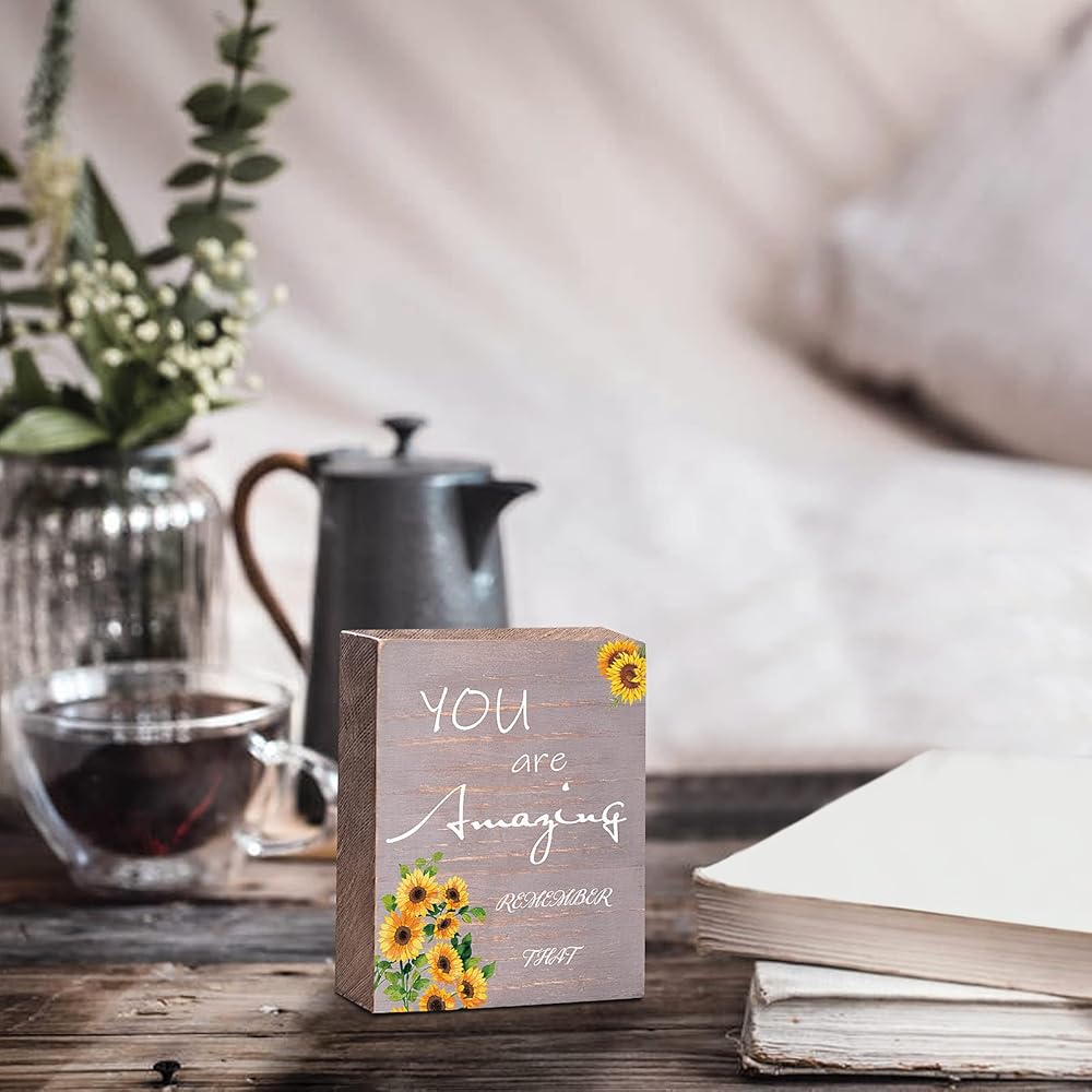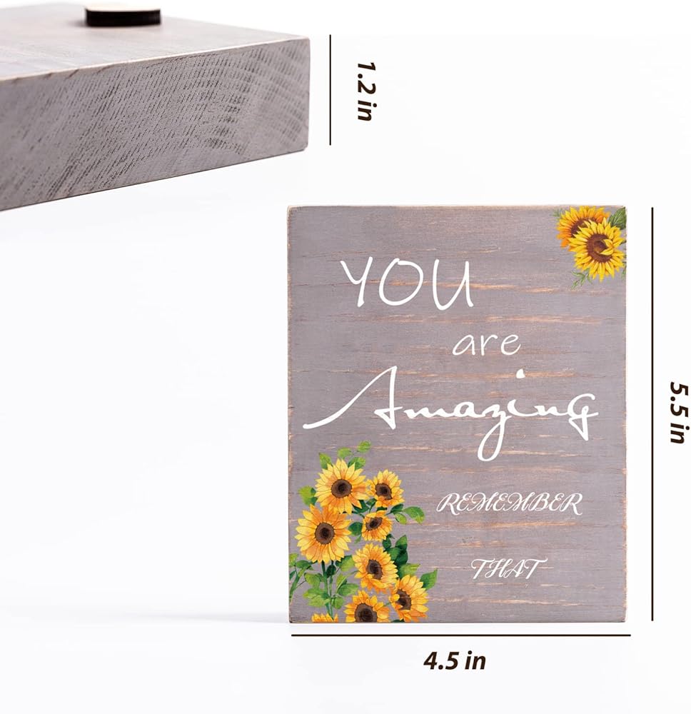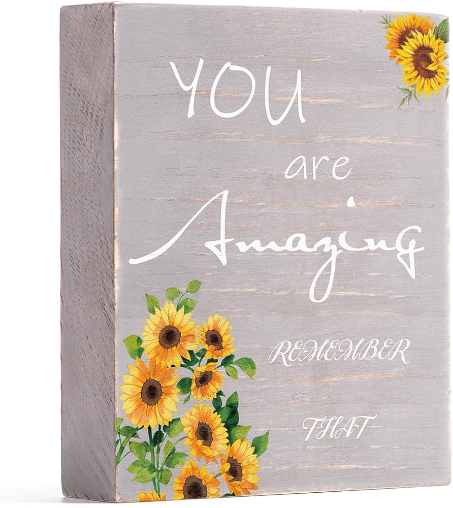 لافتات مكعبات خشبية لبيت المزرعة كتلة خشبية للمكتب الريفي مع طباعة عباد الشمس وكلمات ملهمة - أنت رائع، رائعة كهدية تخرج على سطح الطاولة وديكور المكتب المنزلي، هدية للنساء.