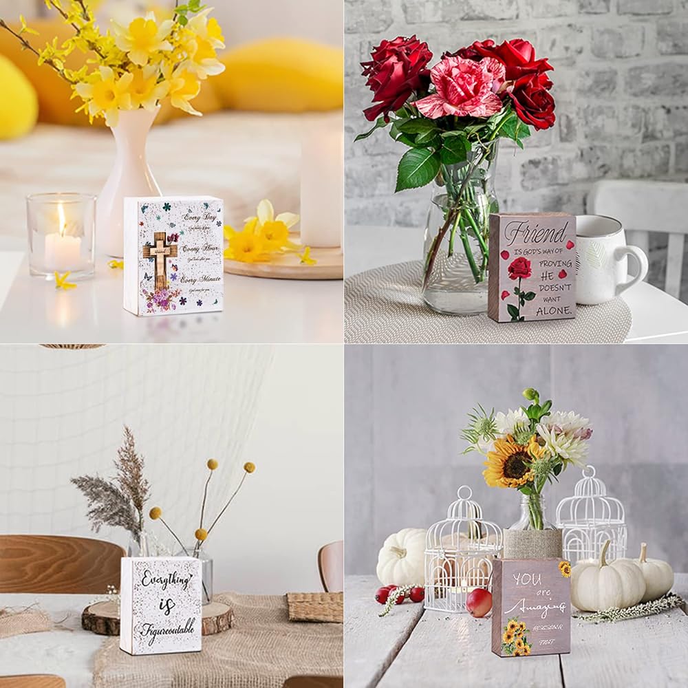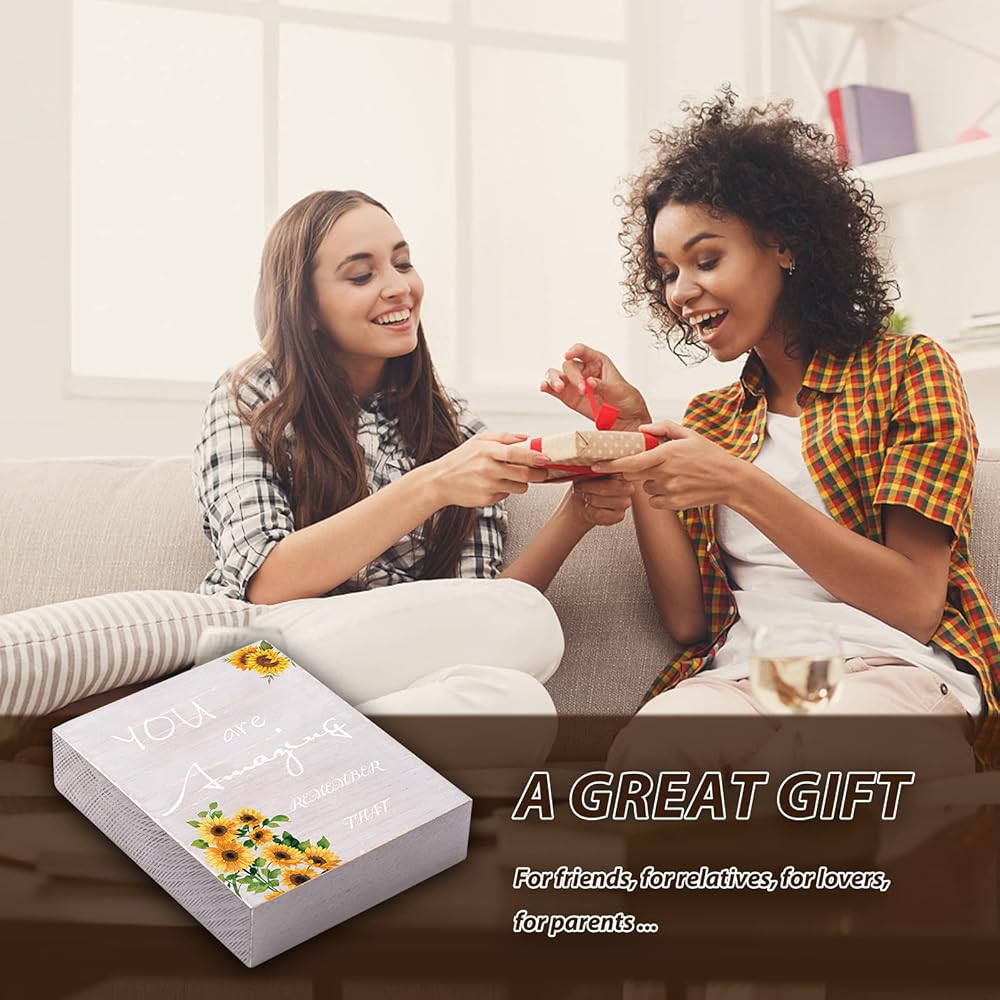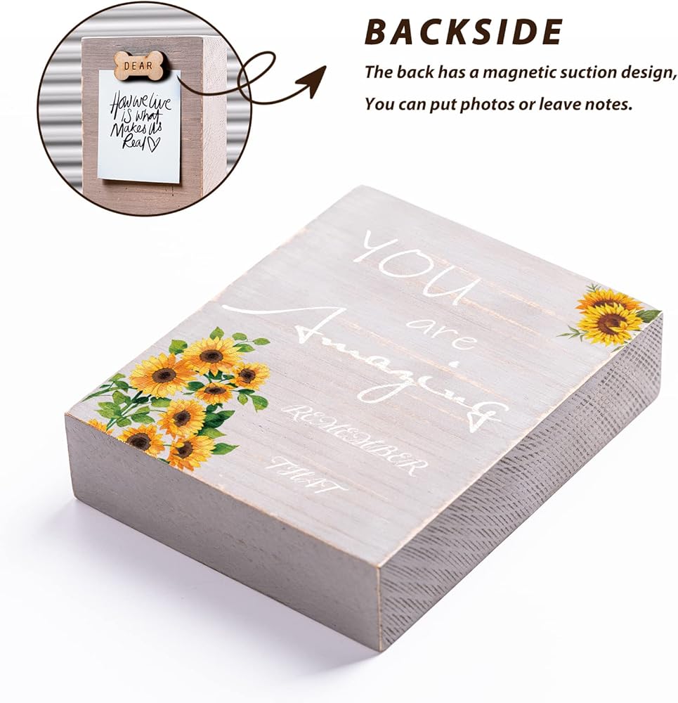 لافتات مكعبات خشبية لبيت المزرعة كتلة خشبية للمكتب الريفي مع طباعة عباد الشمس وكلمات ملهمة - أنت رائع، رائعة كهدية تخرج على سطح الطاولة وديكور المكتب المنزلي، هدية للنساء.
