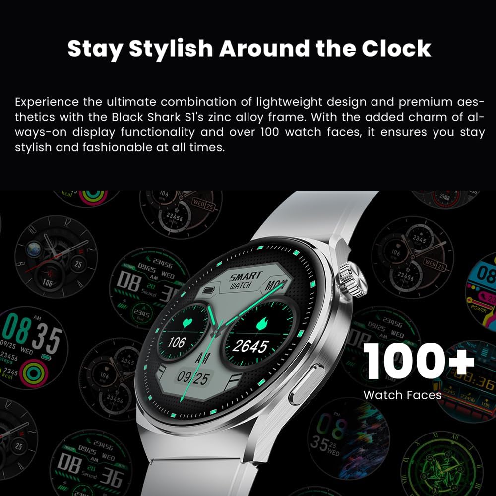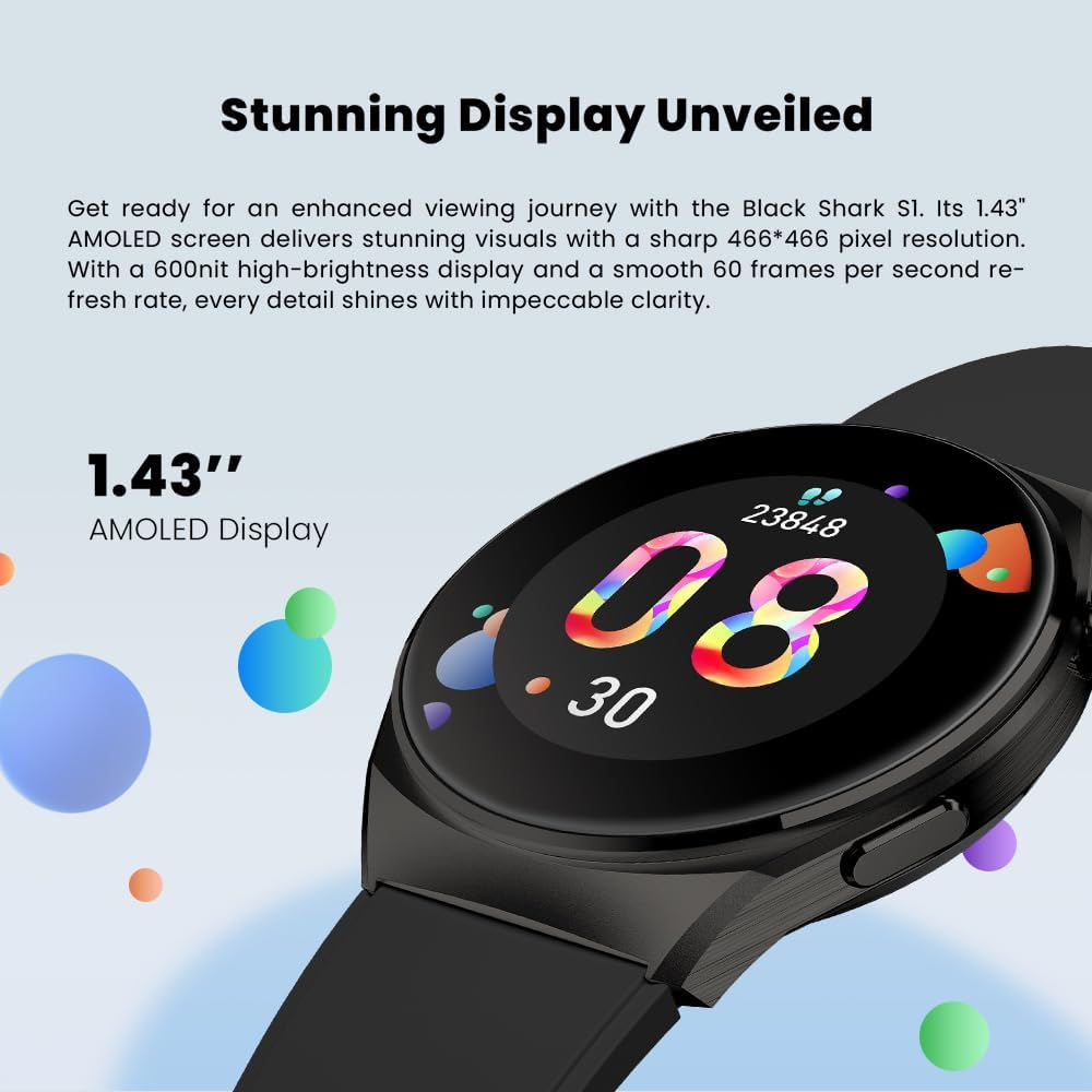 [شاشة AMOLED مقاس 1.43 بوصة] - استعد لرحلة بصرية محسنة مع Black Shark S1. توفر شاشة AMOLED مقاس 1.43 بوصة صورًا مذهلة بدقة واضحة تبلغ 466*466 بكسل. مع شاشة عالية السطوع تبلغ 600 شمعة ومعدل تحديث سلس يبلغ 60 إطارًا في الثانية، تتألق كل التفاصيل بوضوح لا تشوبه شائبة.
