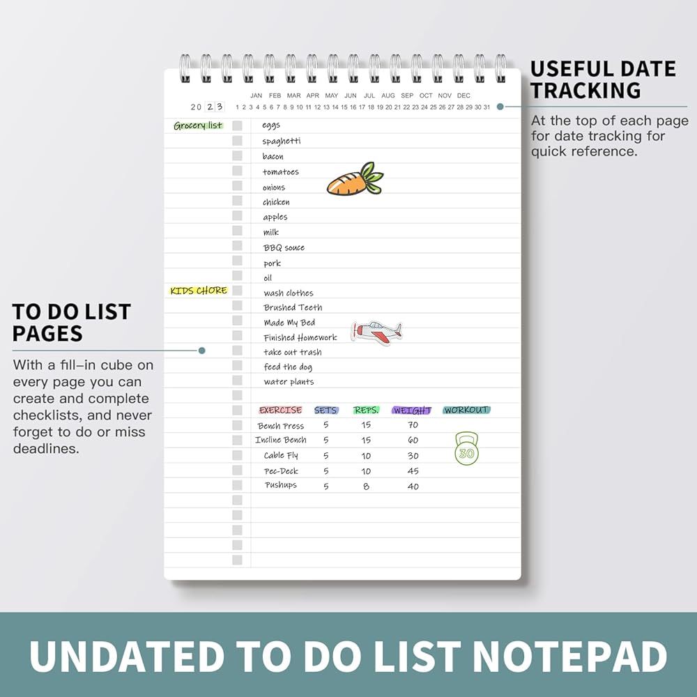 ✍الحجم المثالي الشائع - حجم دفتر ملاحظات سجل الأنشطة هذا هو 7x10 بوصة ويتضمن 52 ورقة كبيرة بما يكفي لجدولك اليومي، وهي مناسبة للاستخدام في العمل والمكتب والمنزل والمدرسة. يمكنك الاستمرار معك خلال الحياة اليومية وهي هدية مثالية.