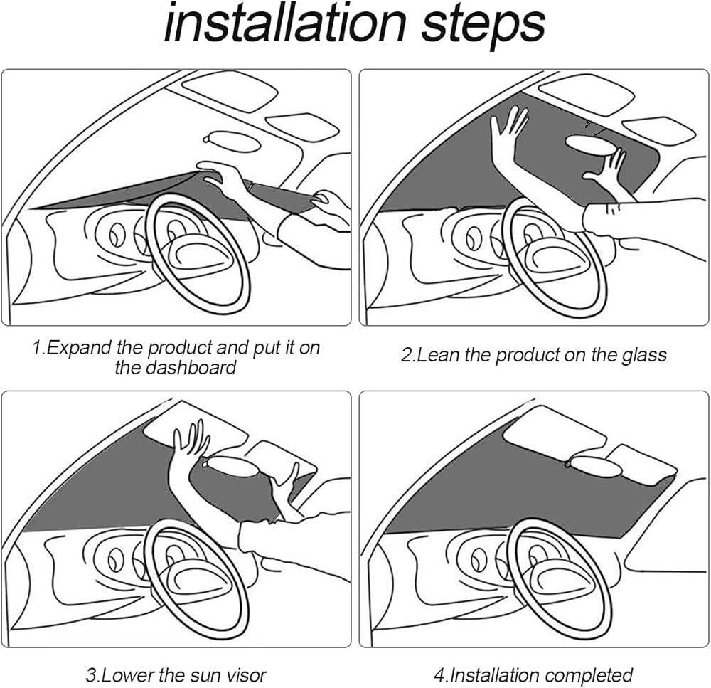 • [سهلة الطي والتخزين] مظلة الشمس الواقية من الرياح لدينا قابلة للطي، وتأخذ مكانًا صغيرًا للتخزين، وتعليمات الطي مرفقة في الصورة. كما يمكن تركيبها وإزالتها بسهولة في ثوانٍ، عندما تكون سيارتك واقفة وفتحها فقط، ضعها تحت درع الرافعة الخاص بك، ثم اسحب الأقنعة للأسفل لمنع مظلة الشمس من السقوط، وقد تم ذلك.