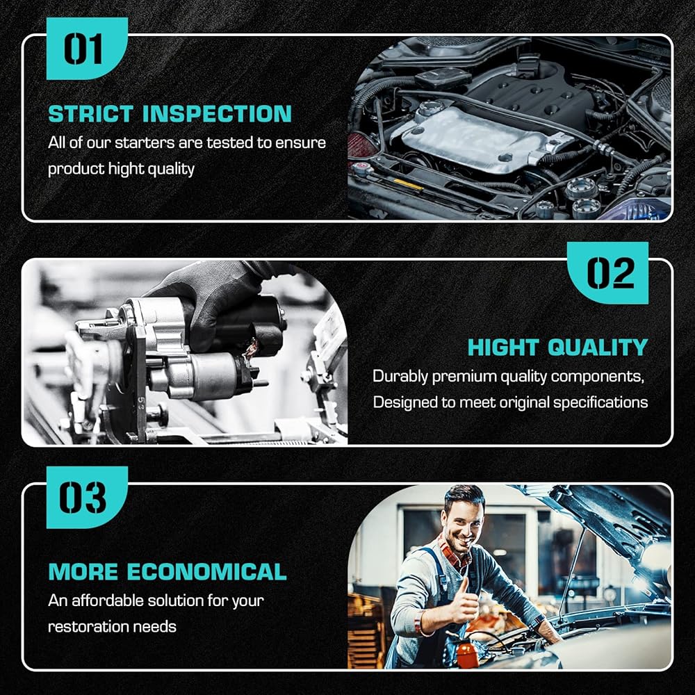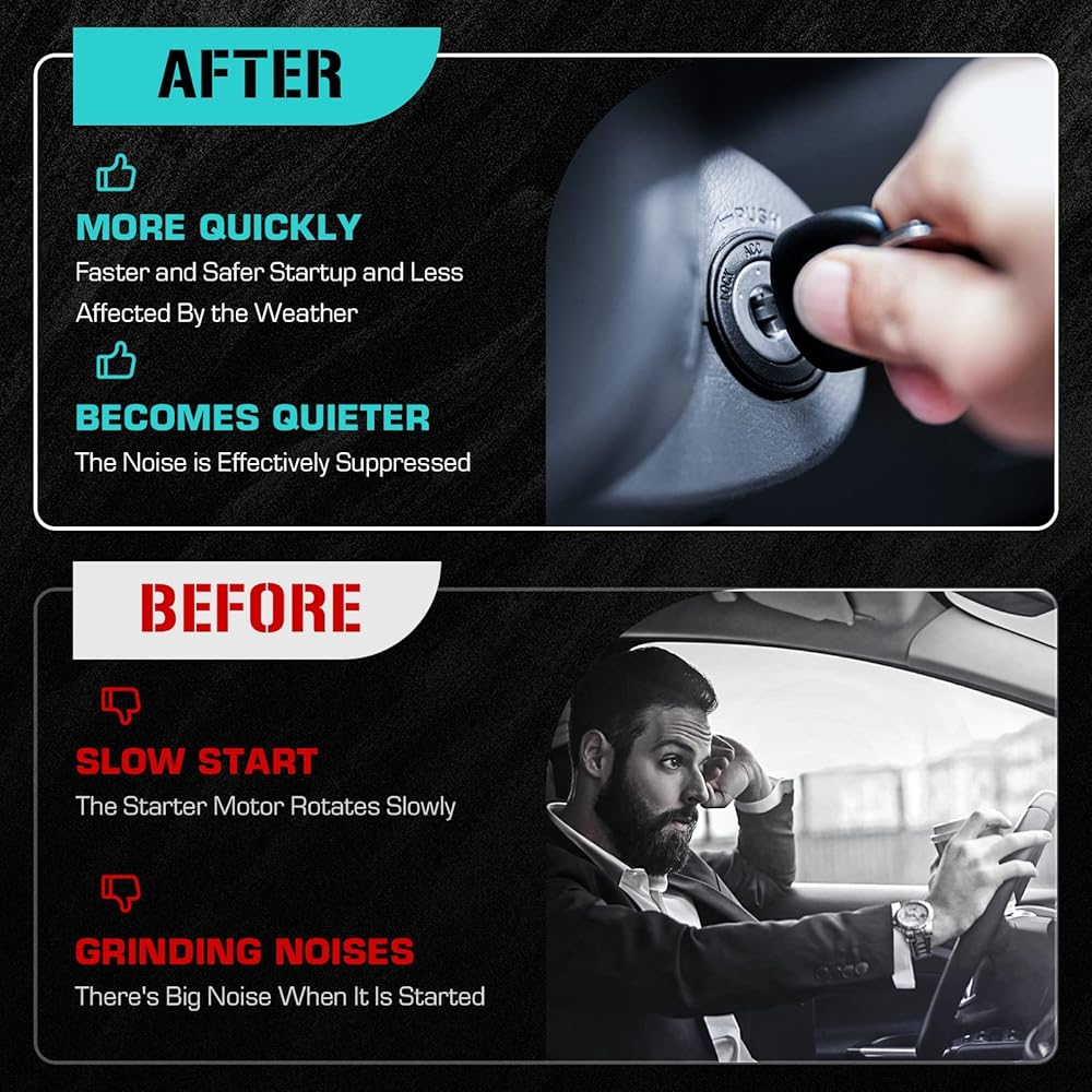 【Premium Quality】The gears of the starter are specally processed and tested by us. They are wear-resistant and anti-skid, not oasy to sllp when starting. drive the engine to run efficiently and provide powerful starting power.