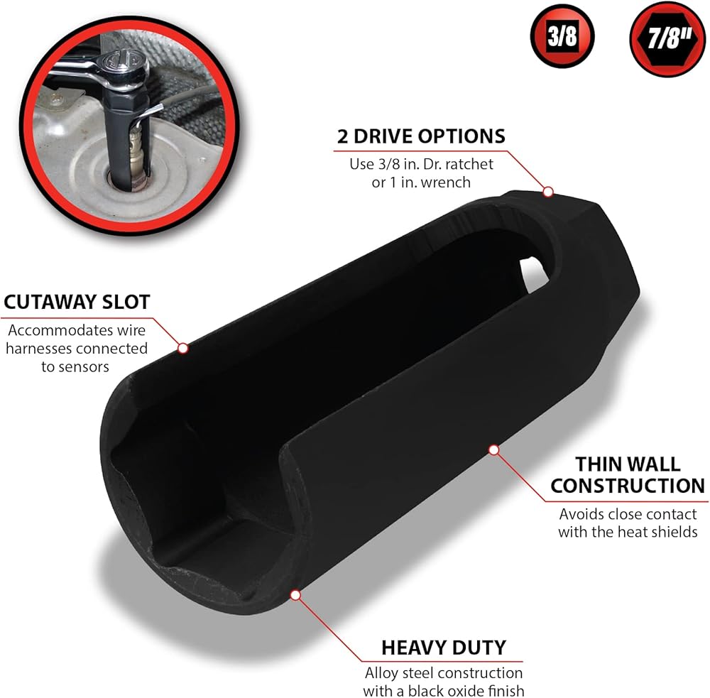 Removes 7/8 in. (22mm) Oxygen Sensors that cannot be accessed with standard O2 sockets