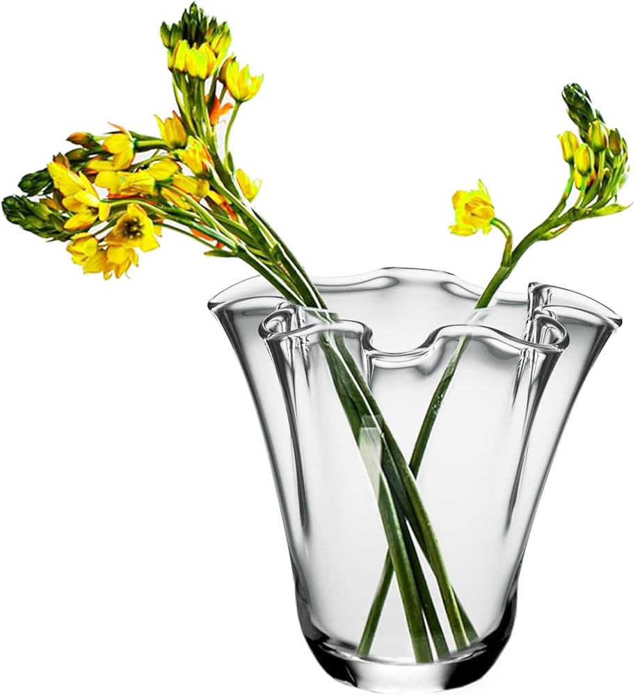 Unique Design: This vase boasts a timeless aesthetic featuring a ruffled rim adorned with blossoms. Our skilled artisans handcraft each of these hand-blown glass vases, ensuring uniqueness in every piece. As a result, slight variations in shape may occur compared to the images, adding to their distinctiveness.