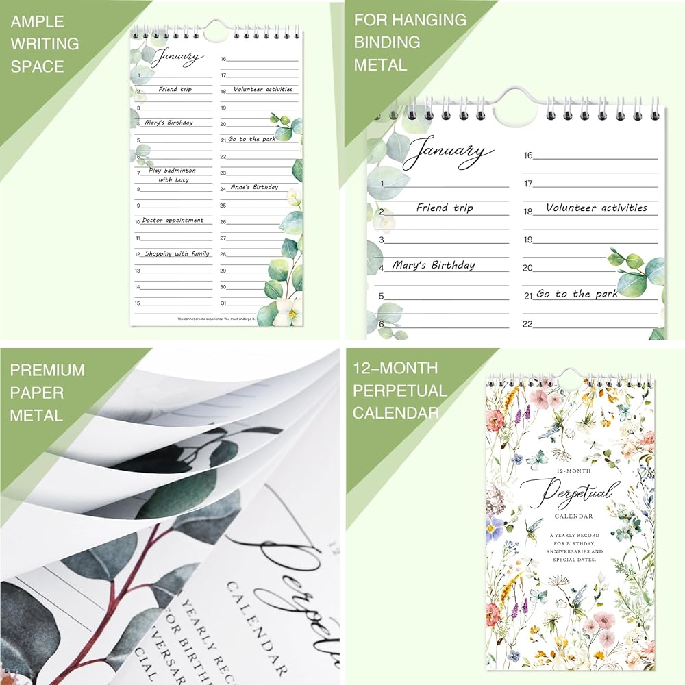 تصميم فريد وجودة عالية - مساحة كتابة كافية + نمط مشرق ونابض بالحياة + طباعة واضحة + علامة نهاية الأسبوع بلون مختلف لسهولة التعرف عليها + فيلم مسح نانو ممتاز فريد يمكن مسحه بسهولة حتى إذا تركت الكتابات على المخطط لمدة منذ وقت طويل.