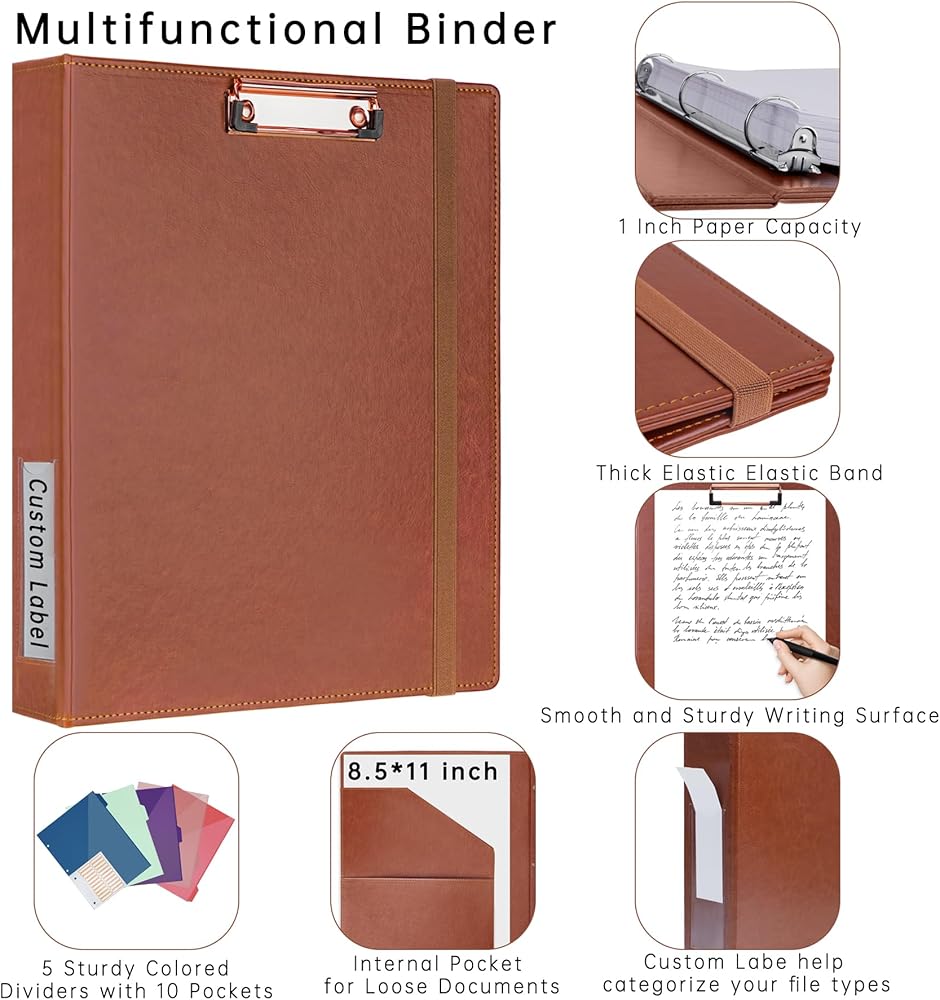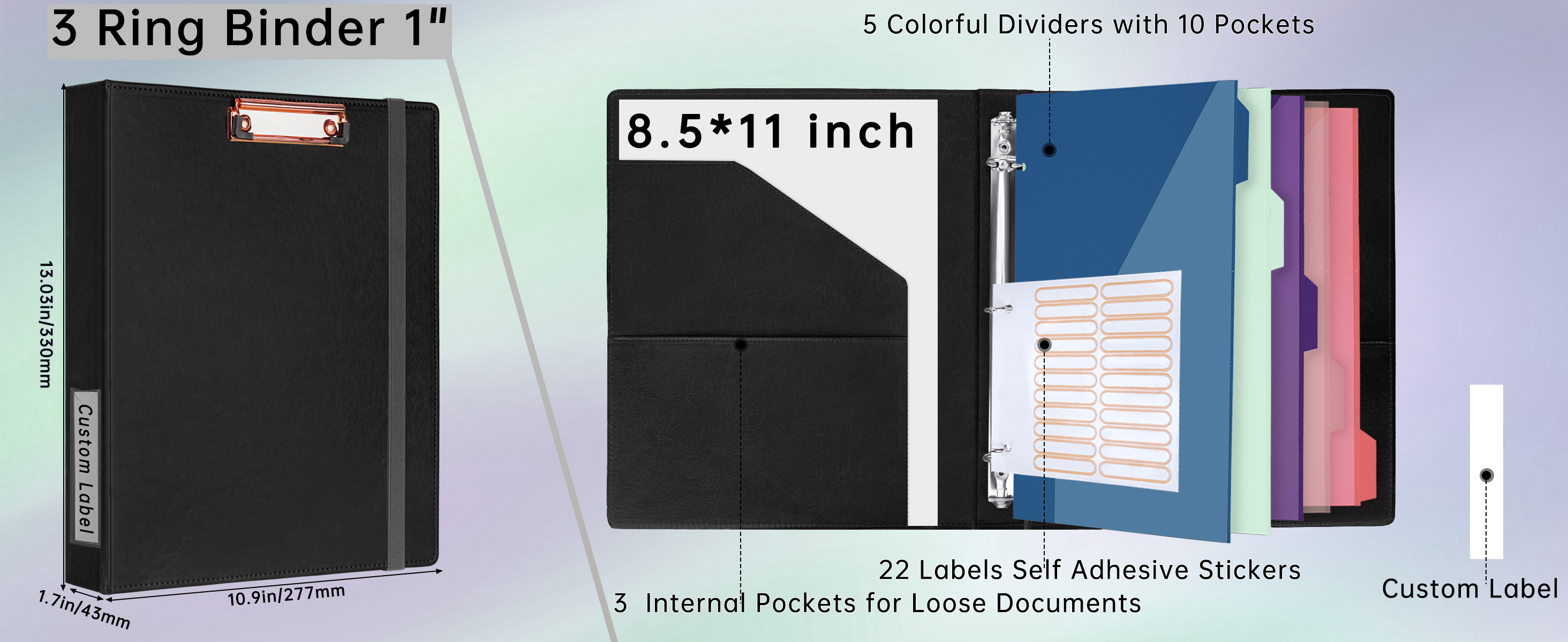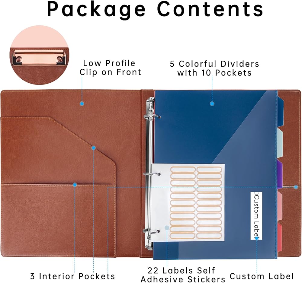 منظم قوي: يحتوي المجلد ذو الحافظة على حلقة دائرية متينة مقاس 1 بوصة يمكنها حمل 200 ورقة بقوة. يأتي أيضًا مع 3 جيوب داخلية لتخزين الملفات بحجم الحروف والملفات السائبة المهمة، ومذكرات، و5 فواصل لعلامات التبويب لـ 10 جيوب و22 ملصقًا ذاتي اللصق لسهولة التنظيم.