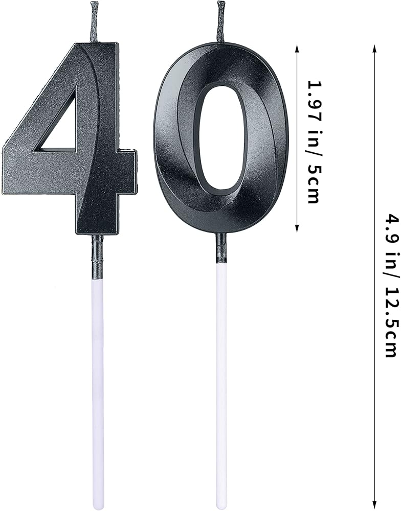 الحجم - العرض: 1.4 بوصة/ 3.5 سم. ارتفاع الرقم: 1.97 بوصة/5 سم. الارتفاع الإجمالي: 4.9 بوصة/12.5 سم. حجم مثالي كزينة للكيك لحفلات أعياد الميلاد أو الذكرى السنوية.