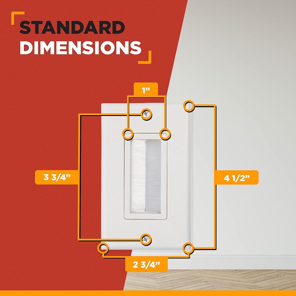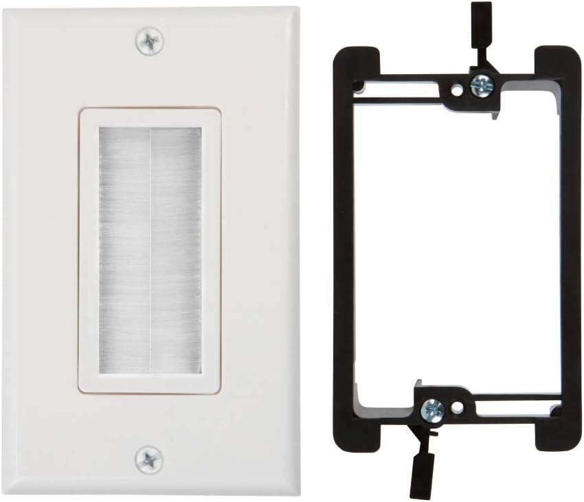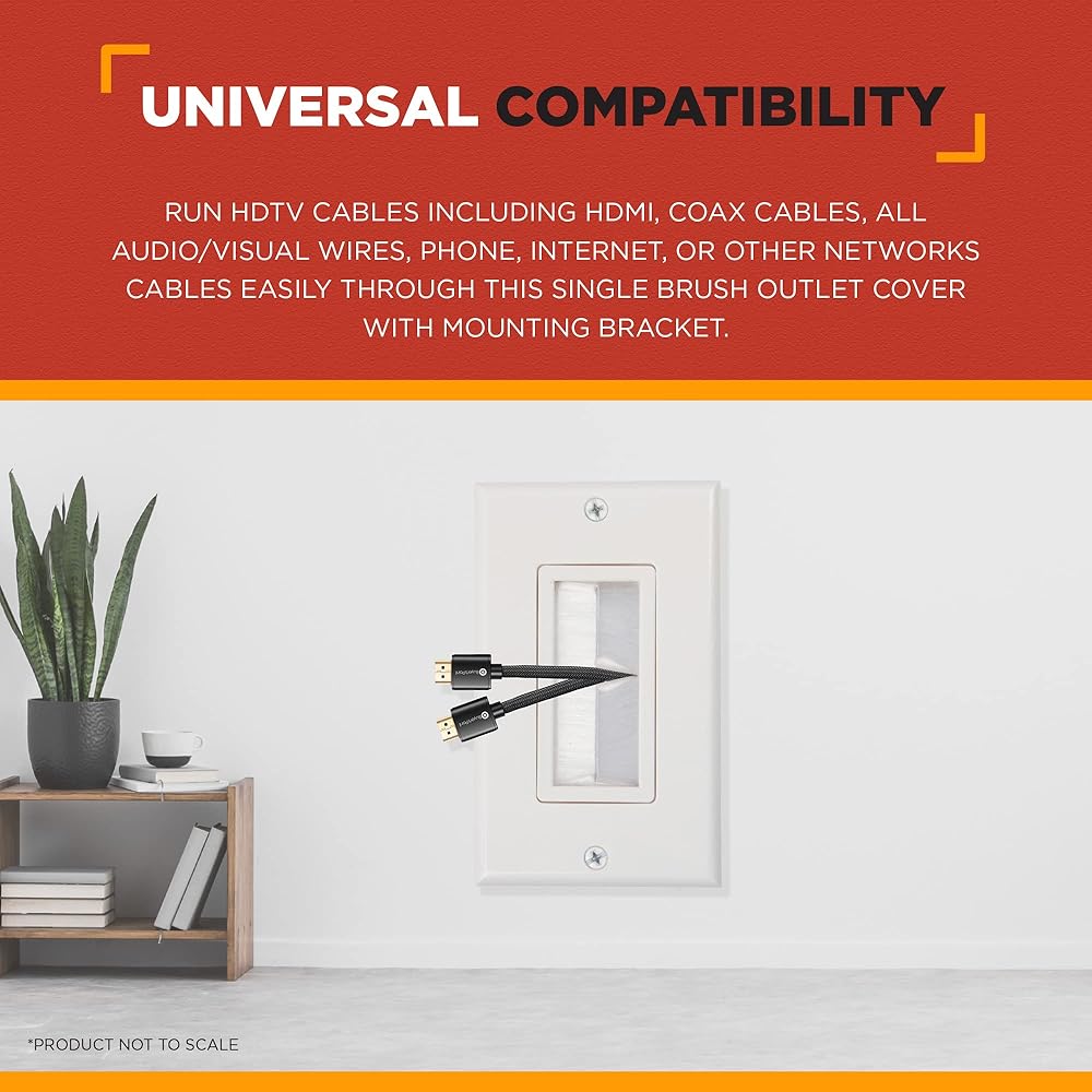 لوحة حائط بفرشاة واحدة من نقطة المشتري | غطاء منفذ مدرج من UL مع دعامة تثبيت، خافي عيوب سلك مثالي للتلفزيون المثبت على الحائط، وأجهزة الكمبيوتر المخصصة للألعاب وأنظمة المسرح المنزلي (أبيض/عاجي) - عبوة واحدة