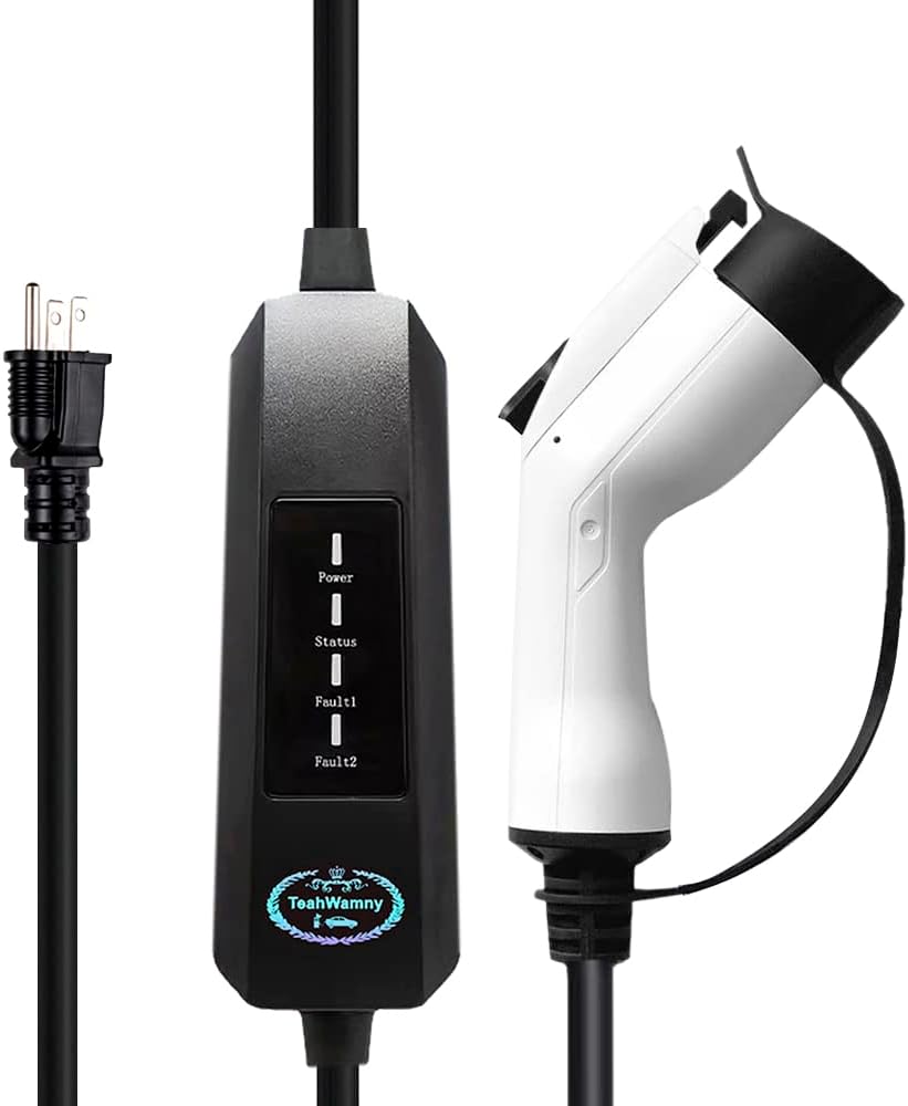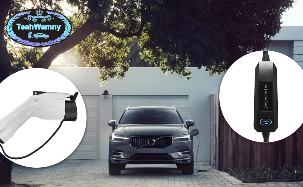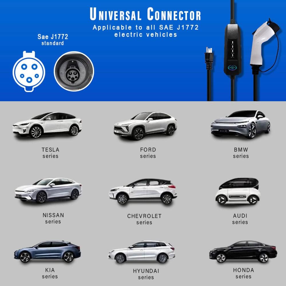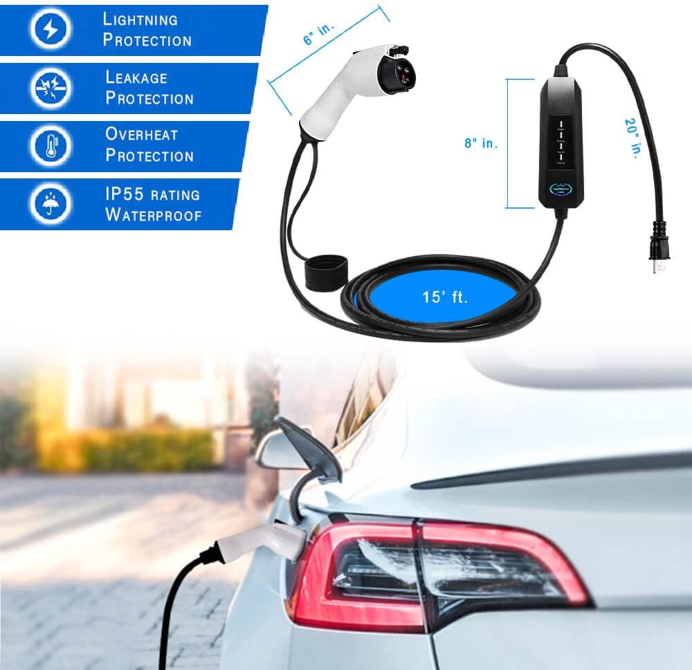 شاحن EV، شاحن EV محمول من المستوى 1 و2، شاحن سيارة كهربائي، كابل شحن EVSE، آمن معتمد، 110 فولت - 240 فولت، 16 أمبير، مناسب لجميع J1772 EVs (قابس NEMA5-15، محول 6-20P، أبيض، كابل 26 قدم)