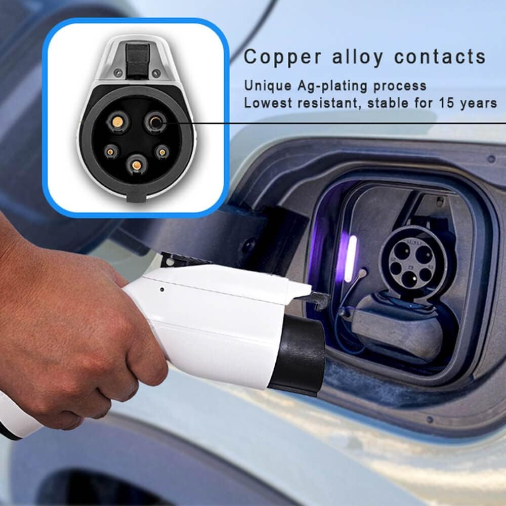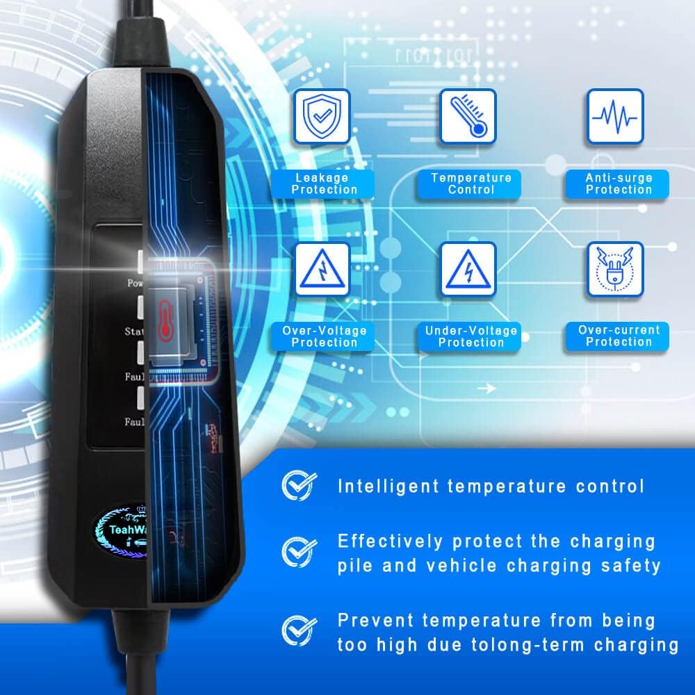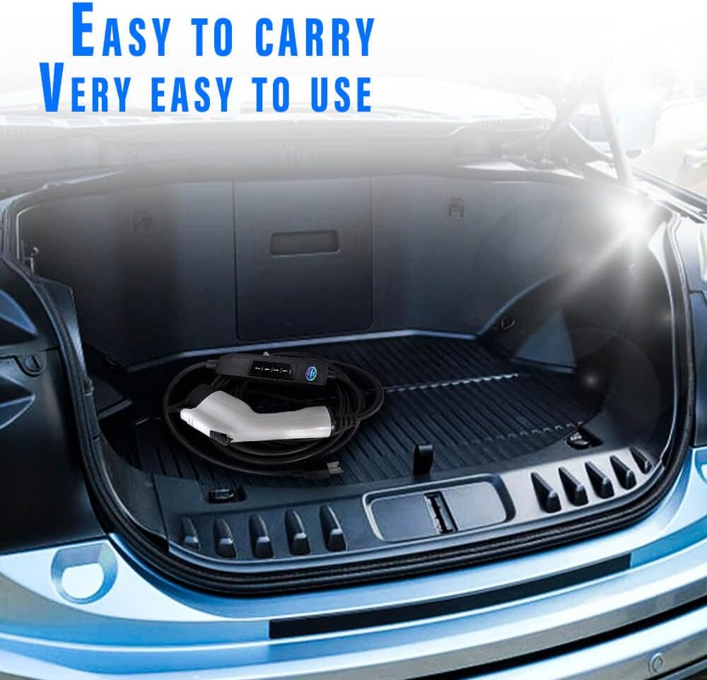 شاحن EV، شاحن EV محمول من المستوى 1 و2، شاحن سيارة كهربائي، كابل شحن EVSE، آمن معتمد، 110 فولت - 240 فولت، 16 أمبير، مناسب لجميع J1772 EVs (قابس NEMA5-15، محول 6-20P، أبيض، كابل 26 قدم)