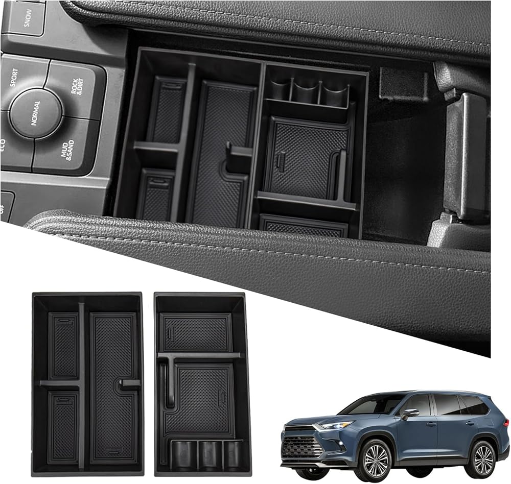 2PC Center Console Organizer Tray for 2023-2024 Grand Highlander Accessories Armrest Storage Organizer Tray for 2024 Toyota Grand Highlander Storage Box Armrest Interior