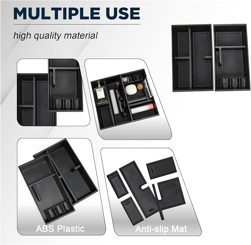 • 【Premium Material】 The center console organizer storage box for the 2023 Toyota Grand Highlander made of ABS plastic, heat-resistant and the interior non-slip mat scratch-resistant, non-slip, robust, keep all items silently while driving.