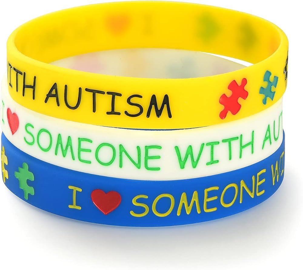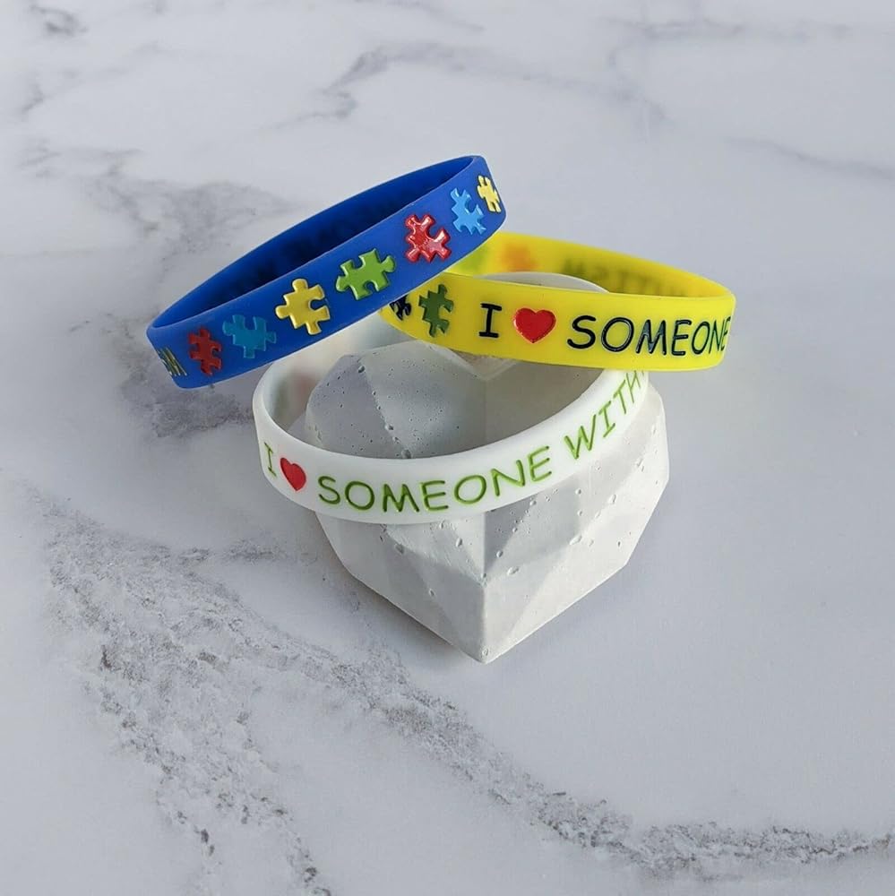 - Includes 3 or 4 silicone rubber 'AUTISM AWARENESS' wristbands or keychain.