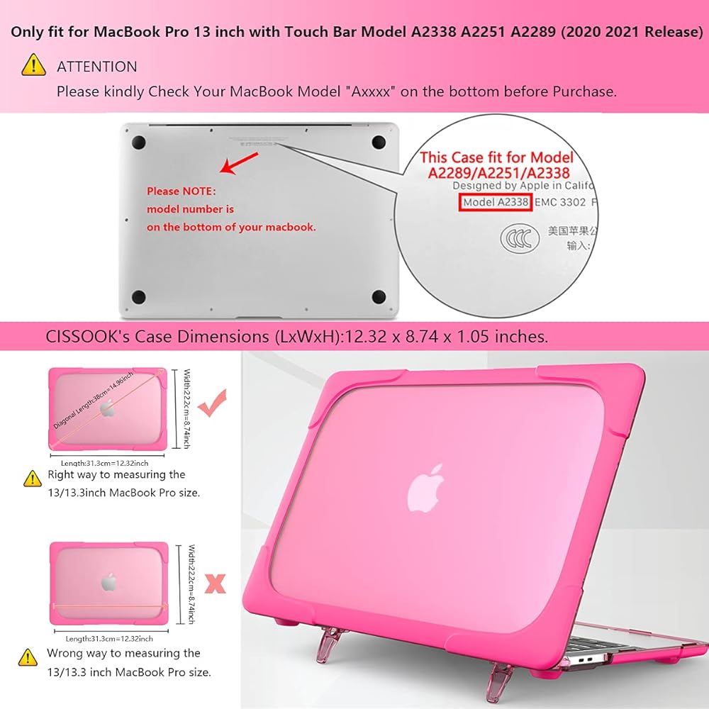 • ●هذا الجراب الواقي المقاوم للصدمات ذو اللون الفيروزي شديد التحمل مصمم فقط لجهاز MacBook Pro 13 بوصة موديل M1 M2 A2338/A2251/A2289 مع شريط اللمس ومعرف اللمس 2020 2021 2022 2023 الإصدار. غير متوافق مع أي موديلات أخرى. يرجى التحقق من رقم الطراز " A2xxx" على الجزء الخلفي من جهاز MacBook قبل الشراء.