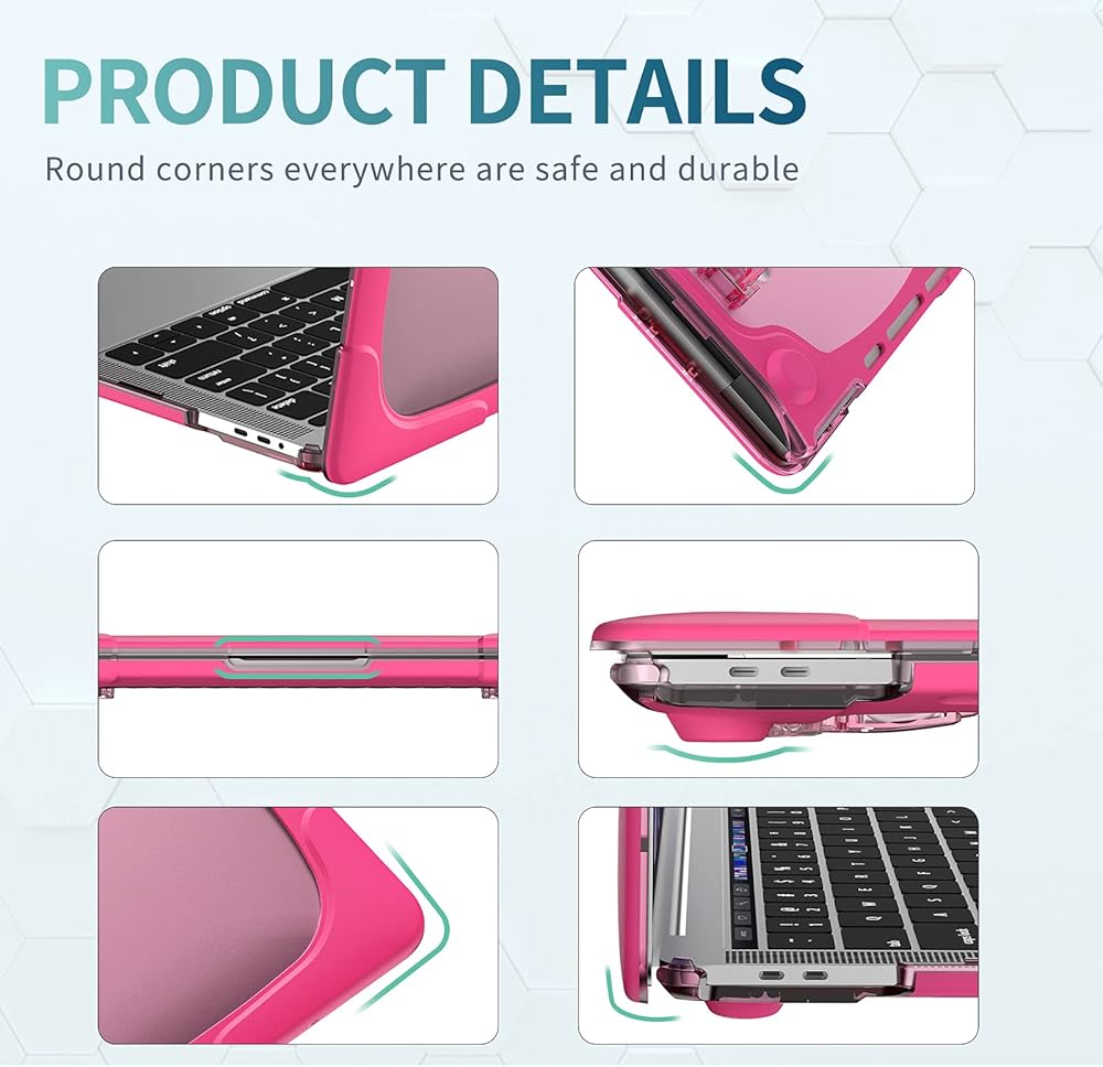 • ●سهل التركيب ومتين بما يكفي لحماية جهاز MacBook الخاص بك من الخدوش والسقوط والخدوش العرضية. تصميم بسيط للتثبيت/الإيقاف دون المخاطرة الإضافية بإتلاف الكمبيوتر المحمول الخاص بك أثناء الاستخدام. حماية 360 درجة مع فتحات دقيقة تسمح بالوصول الكامل إلى جميع المنافذ والميزات دون إزالة الجراب.