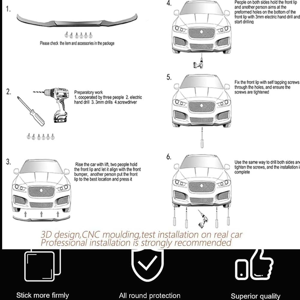 Package Includes: 1 Front Bumper Lip, Screws