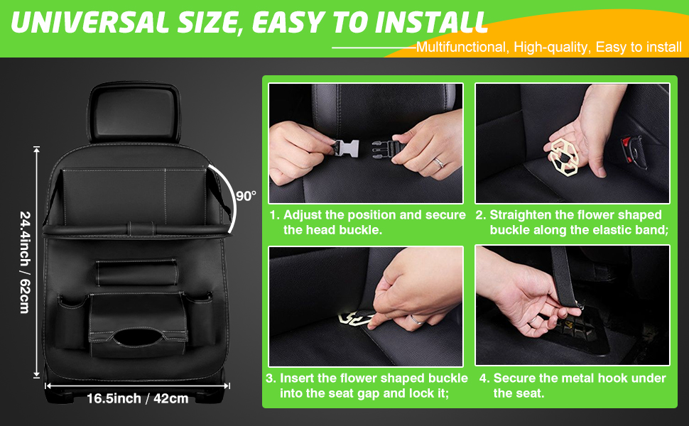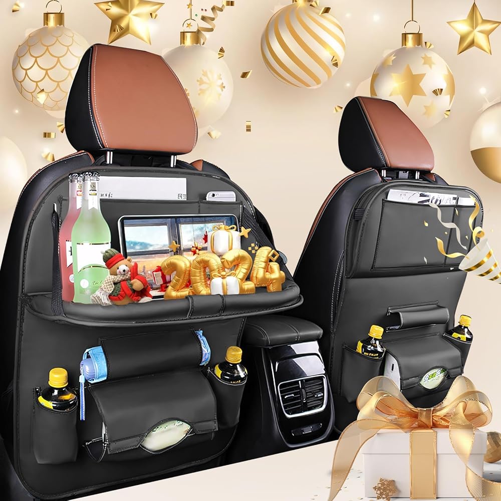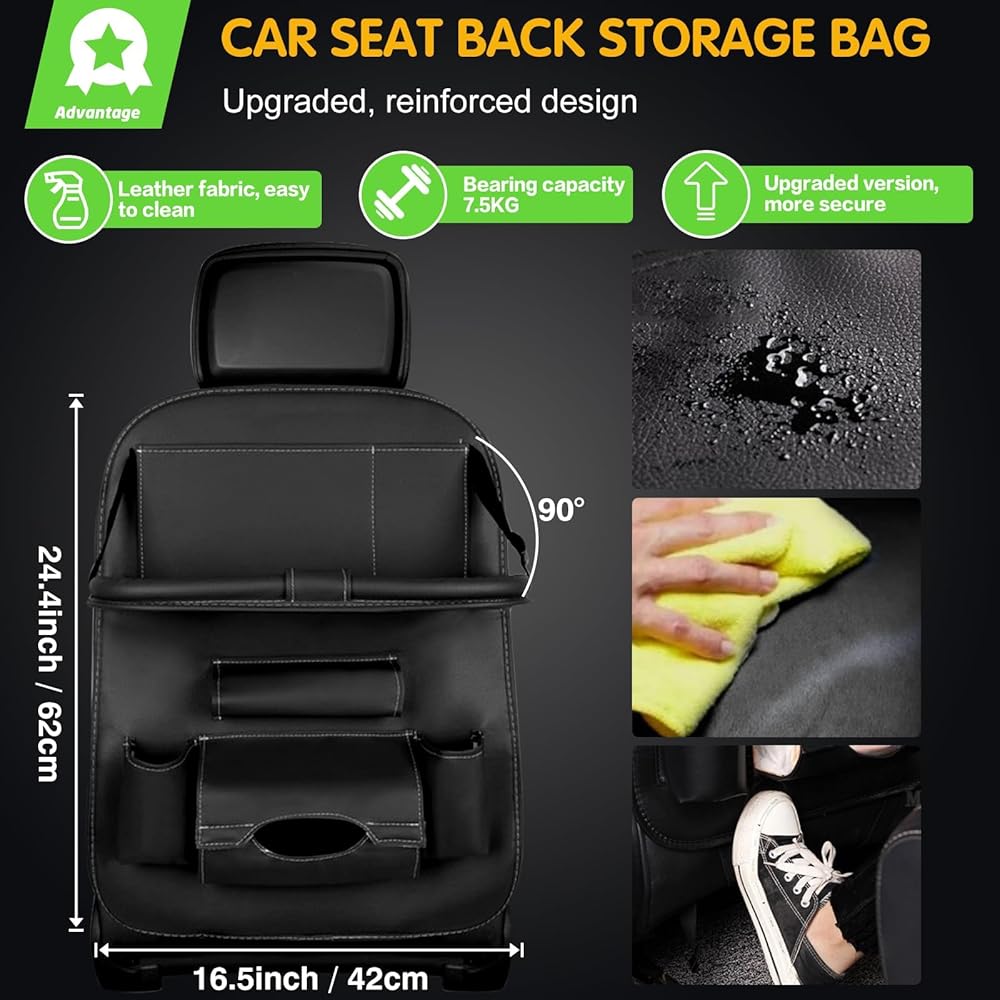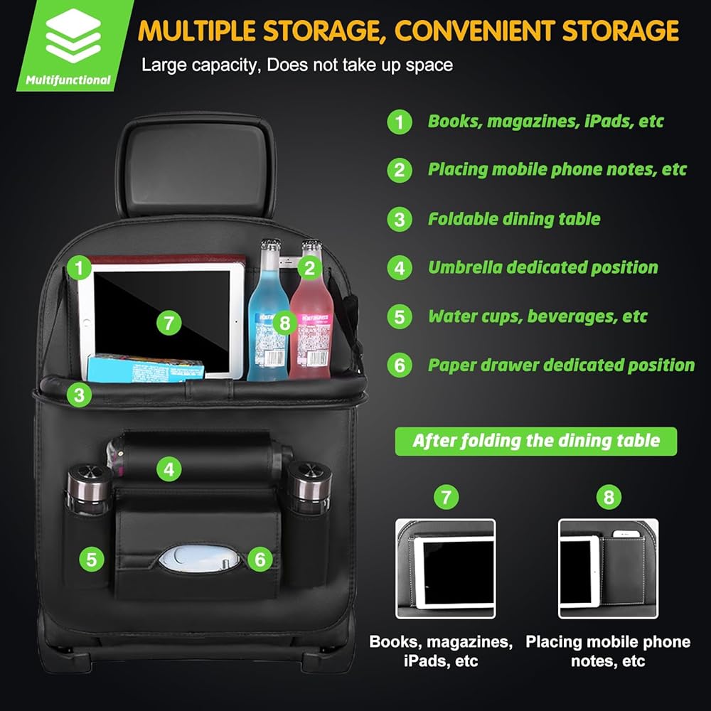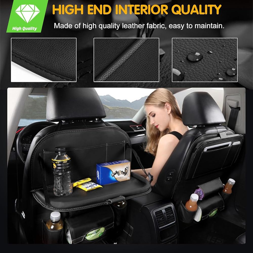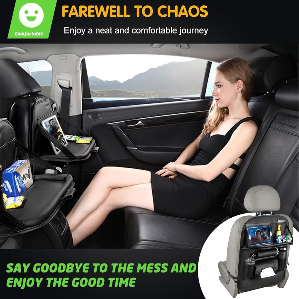 صينية قابلة للطي متقدمة: الصينية القابلة للطي لمنظم مقعد السيارة هي تغيير قواعد اللعبة. يمكن استخدامها كطاولة طعام مريحة أو كحامل للكمبيوتر اللوحي للترفيه أثناء الرحلات الطويلة. يمكنها بسهولة حمل أشياء يصل وزنها إلى 2.5 كجم، مما يوفر الراحة لك ولعائلتك.