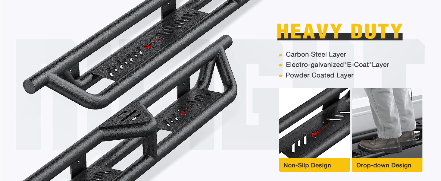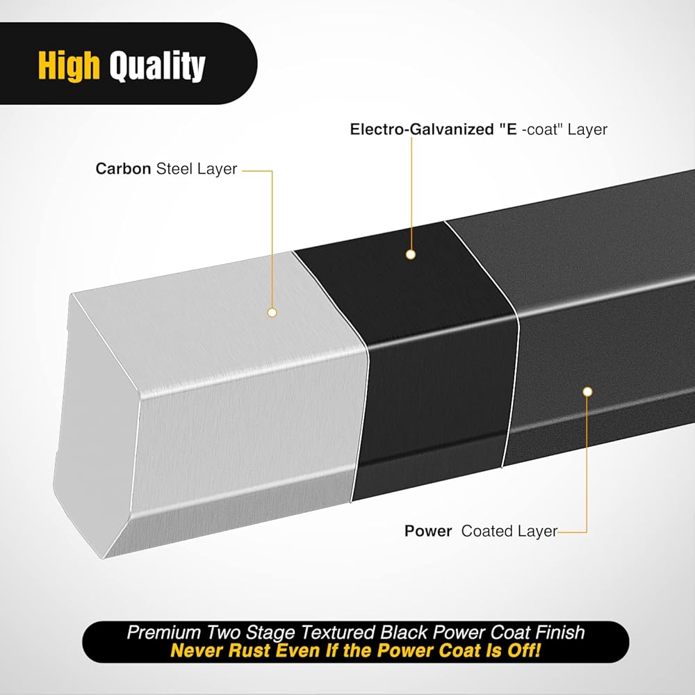 قوي ومتين - يوفر طلاء الطاقة الأسود ذو المرحلتين المتميزتين مقاومة استثنائية للصدأ والتآكل، مصنوع من الفولاذ الخفيف عالي التحمل بسمك 2 مم، وثبت أنه يتحمل ما يصل إلى 450 رطلاً من كل جانب