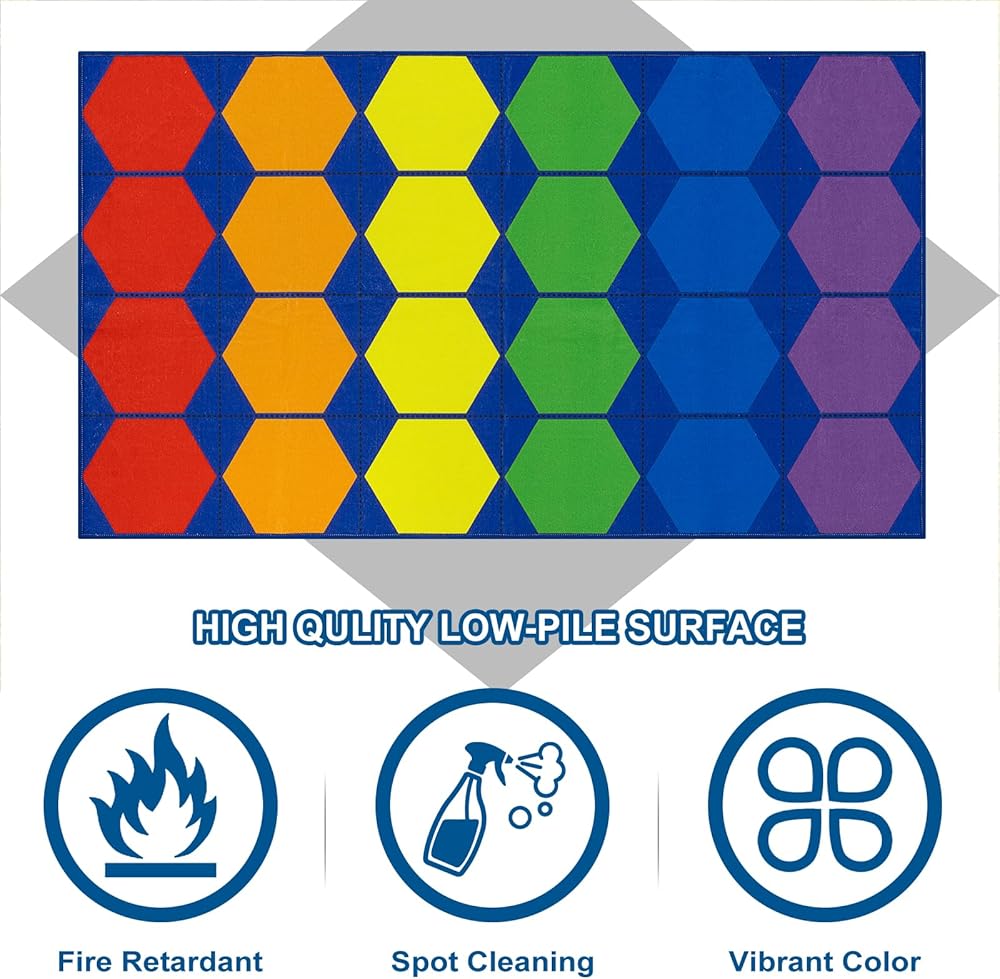 【سجادة كبيرة للفصل الدراسي】: 155 بوصة طول × 90 بوصة عرض (24 مقعدًا) مناسبة للمدارس والرعاية النهارية وغيرها من الأماكن التعليمية، وهي مساعدة رائعة للمعلمين. يمكن أن توفر سجاد الفصول الدراسية غرفة داخل الغرفة. إن طلب المعلم البسيط "الرجاء الجلوس على السجادة" يعني أن الطلاب يعرفون بالضبط إلى أين يذهبون